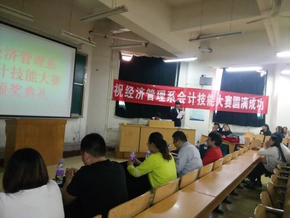 2015年4月28日下午16点30分,我系在6#楼101多媒体教室召开“会计技能大赛”表彰大会,经济管理系副主任孔建华,学管主任助理范世伟以及会计协会同学参加了本次大会。