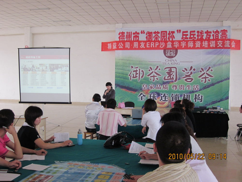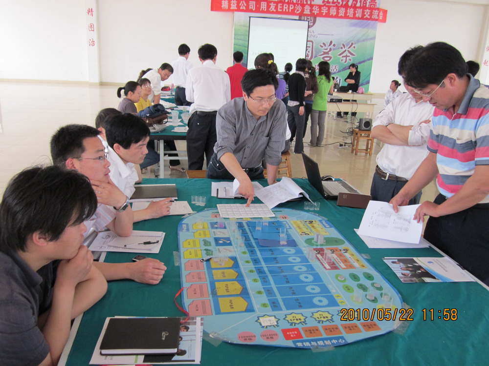 为加深教师对企业经营管理的进一步认识,经济管理系于2010年5月22日在华宇学院大学生俱乐部承办了德州精益公司用友ERP沙盘培训,365best经济管理系主任张开涛、教学主任孔建华、我系30余名教师以及德州学院、德州职业技术学院、德州科技职业学院10多名教师代表共同参加了此次培训。该培训以物理沙盘为主,由用友ERP公司的培训人员为各位老师讲解沙盘大赛比赛规则。