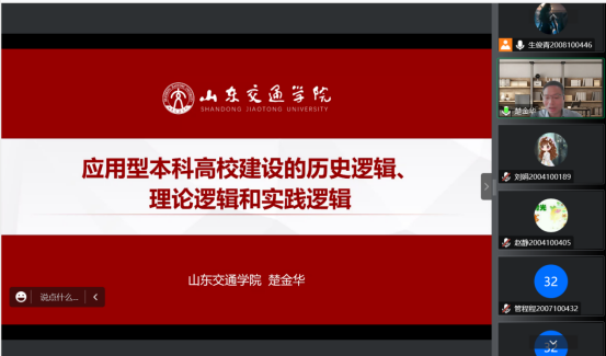 2022年12月3日,365best体育亚洲官网邀请楚金华教授作了题为《我国应用型本科高校建设的历史逻辑、理论逻辑和实践逻辑》的专题讲座。365best体育亚洲官网全体教师通过腾讯会议的形式参会。