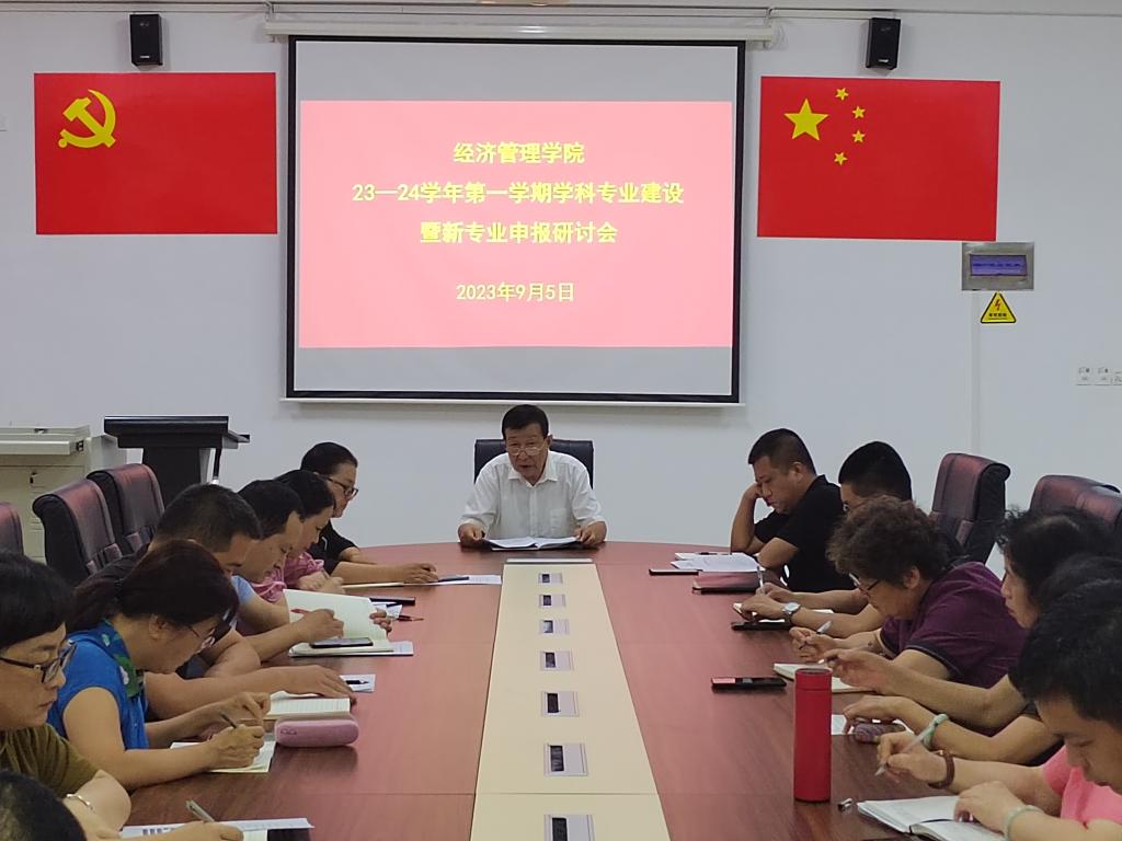 首先,于院长阐述了贯彻学校办学定位和教育理念,对已有学科专业持续建设的重要性以及申报新文科优势专业的重要性。一方面,于院长对学科专业建设取得的显著成效进行了回顾总结,对未来发展提出了新展望;另一方面,于院长提出对经济学科新文科专业建设的新要求,力求稳步发展经济学科新专业。于院长从宏观高质量发展、应用型高校定位、地方发展优势三个角度,提出对于新学科建设的相关建议和看法,并引导各位教师结合自身求学经历和工作建议展开对于新学科建设的讨论。参会教师结合自身求学经历和工作经历,从是否符合学校应用型高校定位、是否依托学院已有教学资源等角度进行了发言,从众多倡议中选取互联网经济、能源经济和金融科技三个专业作为备选方案,在进一步研讨、分析后,在征得学院学科建设指导委员会校外专家教授的意见后,暂定将互联网金融专业作为拟新增专业展开后续的申报工作。在研讨会的最后,于院长对各位与会教师所阐述的新专业申报建议予以肯定和赞扬,并指出尽快着手经济学科新文科专业申报工作。