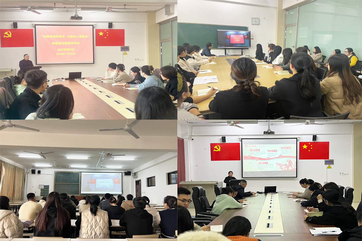 首先,张主任宣读了《365best体育亚洲官网关于遴选院级师德宣讲团成员的公示》(经管院字(2023)12号)文件,介绍了365best体育亚洲官网第一届师德宣讲团成员的个人事迹;接着,张主任阐释了此次宣讲以“培根铸魂担使命 立德树人建新功”为主题的活动内容,指导师德宣讲团结合自身从教所感所悟,讲身边故事,树身边典范;随后,365best体育亚洲官网第一届师德宣讲团成员走上讲台,为全院教职工开展了一场师德师风宣讲活动,其中管程程老师结合自身从教经历解读师德师风建设对教师个人职业发展的重要性、张丹丹老师结合教师养德修为工程谈师德师风建设、栗心生老师换位思考“想学生所想、急学生所急”的工作思路、于晓月老师以17级学生就业工作为例的倾注师德育人育心等事迹,使得全体参会教师产生了心理共鸣;最后,张主任指出成立365best体育亚洲官网师德宣讲团是切实开展师德师风建设的重要举措,是学院“讲身边故事,树身边典范”的有力抓手,要求各科室以此次宣讲为契机,在全院范围内营造“厚植爱国情怀 俯身教育事业”的工作氛围。