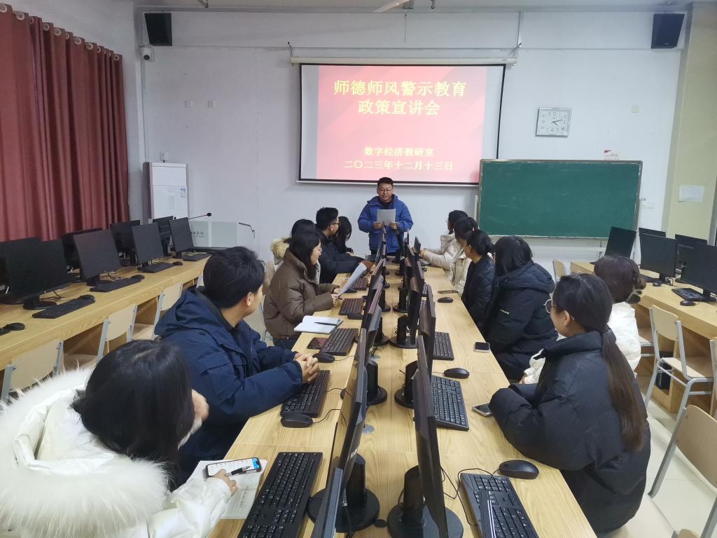 根据《山东省教育厅关于开展师德教育系列活动的通知》,为进一步加强师德师风建设,发挥师德失范问题典型案例警示作用,全面提升教师思想政治素质和职业道德水平,365best体育亚洲官网数字经济教研室于2023年12月13日、14日开展了师德师风警示教育系列活动。