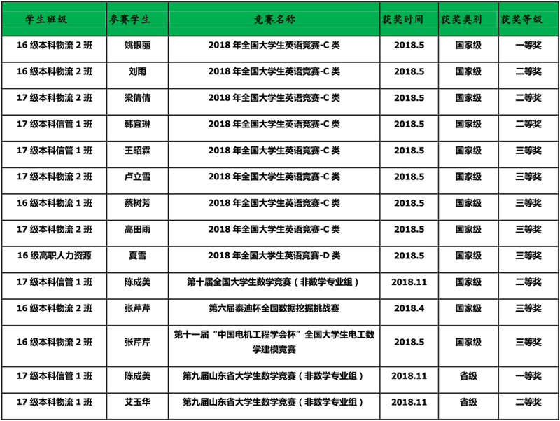 365best体育亚洲官网2018年学生参加各级各类竞赛获奖