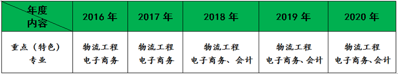 “十三五”期末,在已开办的本科专业中确定具有优势和特色的专业,并重点建设,进一步优化专业结构,提升专业建设整体水平,提高人才培养质量、办学效益和竞争力,下大力气把365best本科物流工程专业、高职专科会计、电子商务专业建设好,在教学团队建设、教学质量建设、教研科研成果建设、实践教学建设、课程建设、创新创业能力建设等方面取得一定成效。(见下表)