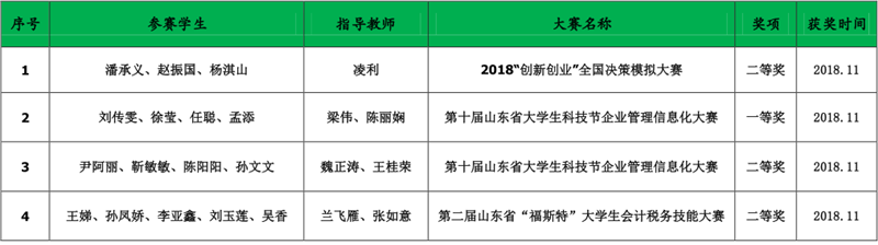 365best体育亚洲官网2018年学生参加各级各类竞赛获奖