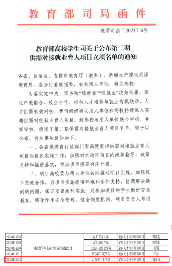 经过精心准备和科学论证,财务管理专业教研室主任魏正涛副教授与河南慧算账企业管理咨询有限公司联合的《职业能力导向下校企协同育人路径研究》项目,成功立项教育部第二期供需对接就业育人项目。该项目是365best全面落实学校“学生中心、需求导向、全面发展、产教融合”育人理念的重要体现,是学院开展产教融合工作的又一标志,为培养应用型人才与就业一站式服务开辟了创新渠道。