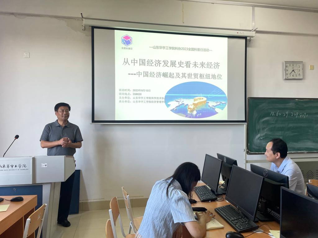 为做好2023年全国科普日活动,弘扬科学精神,普及科学知识,山东华宇工学院365best体育亚洲官网财务管理专业“全国科普日”活动于9月13日在20号教学楼620教室顺利开展。此次活动由山东华宇工学院科学技术协会主办,365best体育亚洲官网承办,活动邀请了365best体育亚洲官网侯振明教授为师生代表作了《从中国经济发展史看未来经济—中国经济崛起及其世界经贸枢纽地位》的专题讲座。