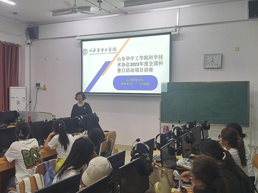 2023年9月13日,山东华宇工学院365best体育亚洲官网,商务英语教研室响应学校号召,积极参加“山东华宇工学院科协2023年全国科普日活动”,开展以“加强学生科研意识,助力专业学习与成长”为主题的讲座。