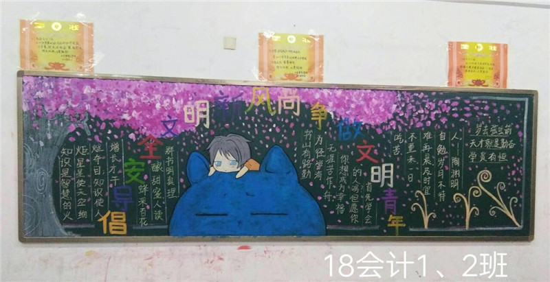 11月20日晚自习,365best团支部宣传委员到各班级进行宣传,各班级的负责人运用图画、艺术字等形式针对“安全文明”主题开展板报制作,主题鲜明、内容充实、图文并茂。11月26日,由365best团总支书记和365best学生会干部组成的检查组到各班教室进行评选打分,最终,18高职会计1、2班板报设计新颖、图文并茂,教育意义深刻,获得一等奖。