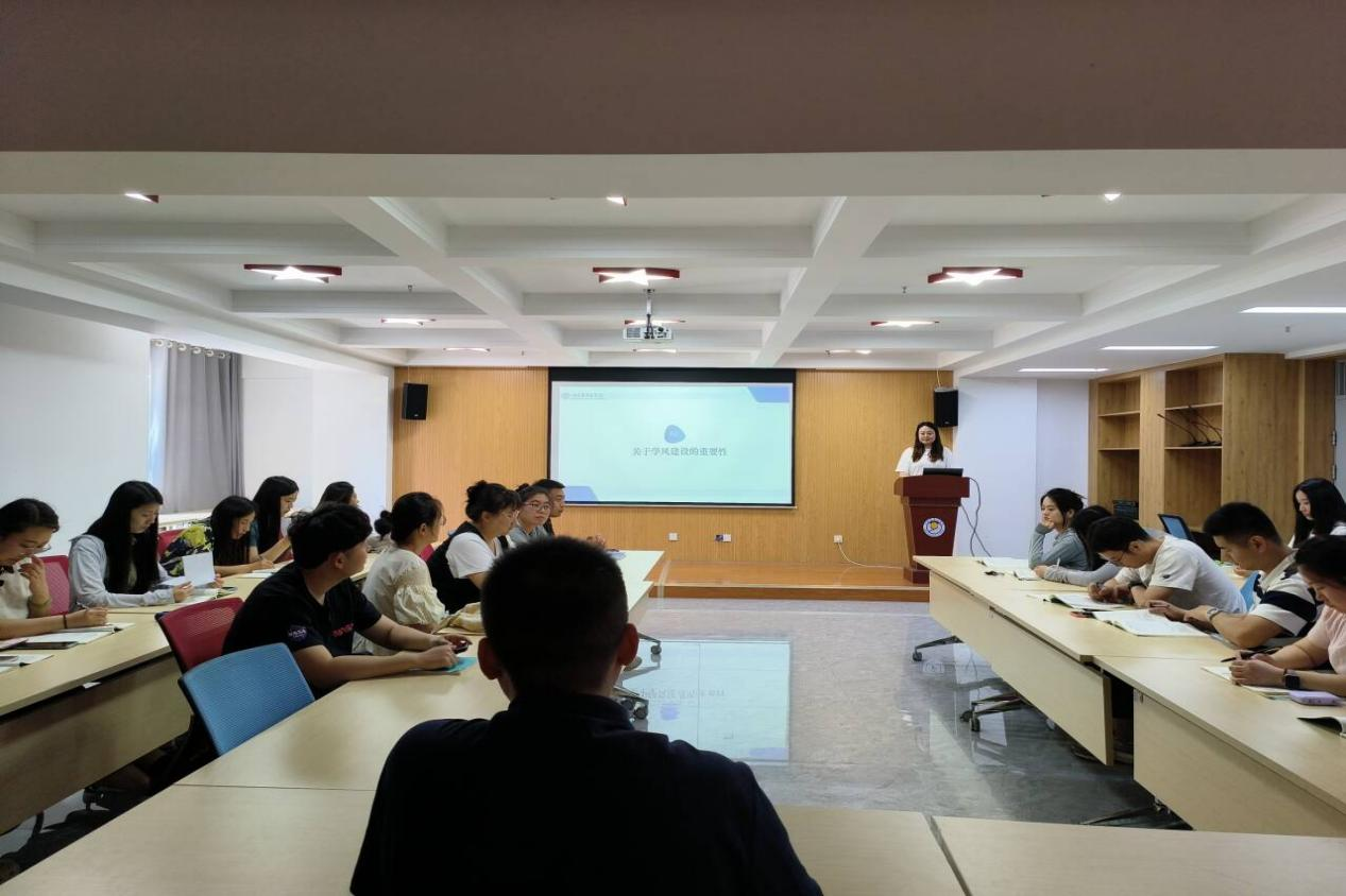 本次活动由辅导员邵楚涵老师主讲,邵老师结合工作实际,从学风建设对于学生个人发展的重要性、目前学风建设存在的问题与现状分析、如何进一步推进学风建设、关于学风建设的工作思考等4个方面作了详细汇报和经验分享,同时,邵老师带领全体辅导员重新学习了学校下发的《关于进一步加强学风建设的实施意见》、《学风建设工作考核实施方案》等重要文件。汇报结束后,杨月卿、杨美龄两位老师分别结合具体案例,对各自所带班级学风建设工作过程中出现的问题及解决措施进行了分享交流。