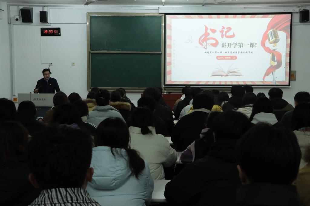 开学第一课主要围绕“培养什么人、怎样培养人、为谁培养人”这个根本问题展开,课程内容主要包含“树立远大理想,坚定崇高信仰""坚持自信自立,维护国家安全""学习先锋榜样,永葆家国情怀""心中有信仰,肩上有担当"四部分。范书记通过一个个鲜活案例指出,青年学子要将个人理想融入民族复兴伟业,在百年变局中筑牢国家利益高于一切"的安全观,以魏世杰、王淦昌、张桂梅等先锋为榜样,厚植"强国有我"的赤子情怀。他强调,新时代青年既要做理想信念的"追光者",更要做知行合一的"行动派",在科技创新、乡村振兴等实践中锤炼本领,以真才实学服务国家发展。课堂通过视频展播、师生互动等形式,生动诠释了信仰的力量与担当的维度。