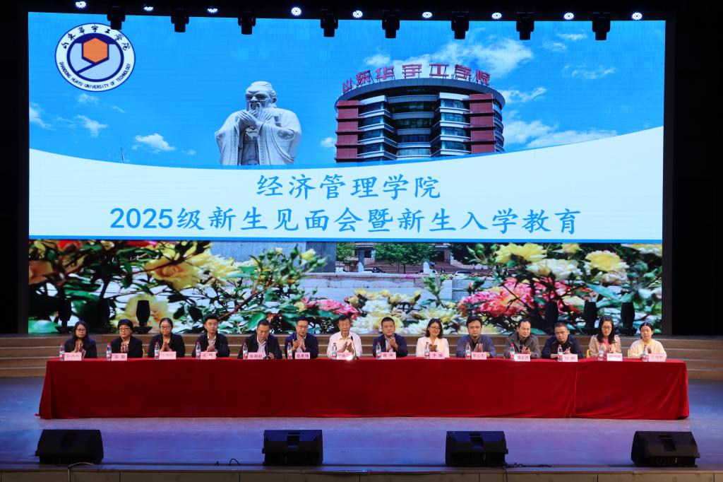 大会伊始,院长于维同代表学院向全体2025级新生表示热烈欢迎,并围绕学院发展历程、学科专业特色和人才培养目标等方面作了系统介绍。他勉励新生树立远大志向,珍惜大学时光,夯实专业基础,积极投身实践,全面提升综合素养,在大学阶段实现个人成长与飞跃。随后,教师代表牟晓雨老师结合自身教学经验,分享了大学阶段的有效学习方法与成长心得,鼓励同学们主动适应大学节奏,勇于探索、敢于创新,在专业学习与社会实践中不断进步。本科数字2502班杜鹃同学作为新生代表发言。她畅谈了对大学生活的期待与憧憬,并代表全体新生郑重承诺,将以饱满的热情投入学习与生活,严于律己、奋发向上,努力成长为一名出色的经管学子。最后,山东圆通速递有限公司总监尹忠文为新生带来《职业生涯规划》专题报告。他结合物流行业发展趋势与企业用人需求,通过丰富案例深入浅出地讲解了如何科学进行职业规划,引导同学们提前谋划未来,筑牢职业发展根基。