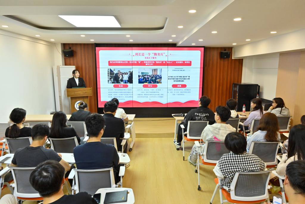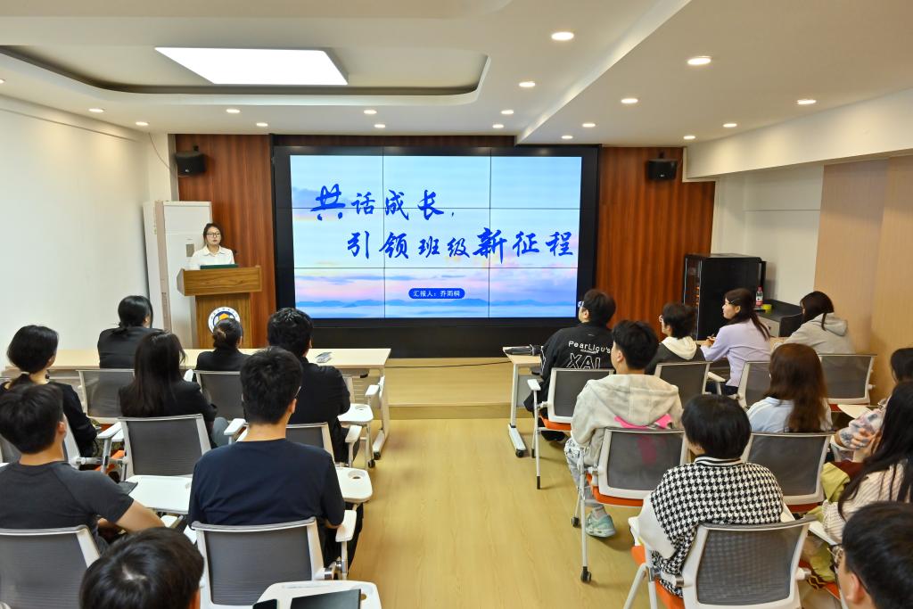论坛交流环节中,三位优秀班长代表依次登台,分享班级建设的实践经验与创新思路。本科信管2302班乔雨桐以《共话成长,引领班级新征程》为题,结合班级在学风建设中的长效机制与文化培育举措,阐述如何以 “成长型思维“ 带动班级整体进步;本科财务2403班孙婧珊围绕《从陌生同学,到学习伙伴》,聚焦新生班级凝聚力构建,分享了通过主题班会、小组学习、集体实践等活动,打破同学间陌生感、打造互助学习共同体的具体做法;本科商英2401班张雅雯则以《连接・服务・成长:当好新时代的班级 “首席服务官”》为核心,提出班长应立足“服务者”定位,在连接同学需求与学院资源、协调班级事务与个人发展中发挥桥梁作用,其理念引发在场班长的广泛共鸣。三位代表的分享紧扣班级管理痛点与学风建设重点,既有理论思考,又有实践案例,为在场班长提供了可借鉴、可复制的宝贵经验。