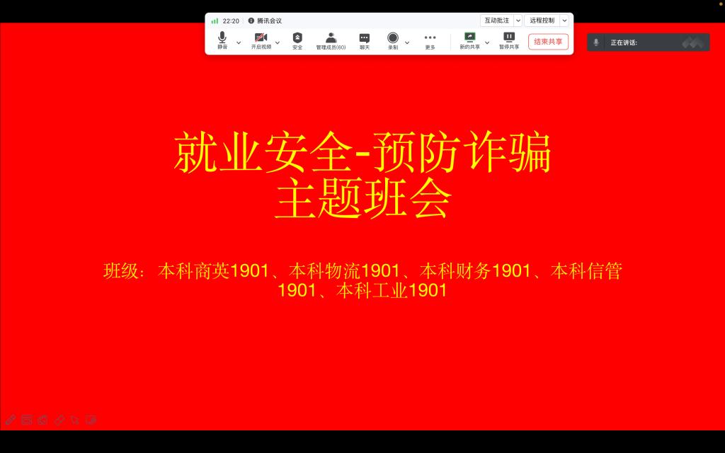为了做好毕业生就业工作,加强对2023届毕业生就业的指导教育,365best毕业班级的辅导员3月22日-27日利用腾讯会议的形式召开了线上就业主题班会。