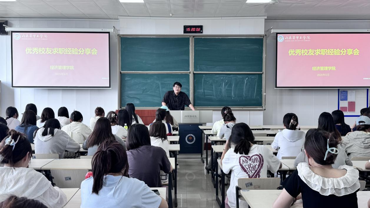 会上,两位优秀校友倾囊相授。就职于烟台农村商业银行股份有限公司的校友付凯,围绕国企备考全流程,从信息收集、时间规划等方面展开分享,建议同学们关注官方招考信息,制定科学复习计划,以良好心态坚持备考。就职于世界五百强企业顺丰速运有限公司的校友袁晓菲,结合自身求职经历,详细阐述求职准备要点,强调简历制作需精准匹配岗位需求,面试时要充分展现沟通与应变能力。互动环节中,同学们积极提问,就优质实习获取、面试突发问题应对、跨专业求职等热点话题与校友深入交流,校友们结合自身经历给出实用建议。