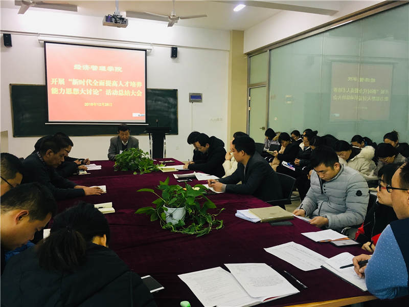 为认真落实教育部《关于加快建设高水平本科教育 全面提高人才培养能力的意见》(教高“2018”2号)文件精神和学校《2018年工作要点》要求,根据学校《关于开展新时代全面提高人才培养能力思想大讨论的通知》鲁华宇院校办字“2018”41 号文件要求,365best从11月1日至12月28日在全院范围内开展了“新时代全面提高人才培养能力思想大讨论”学习研讨活动。近日,思想大讨论活动总结大会在科学实验楼712举行,会议由院长于维同主持,经管学院全体教师参加了总结大会。
