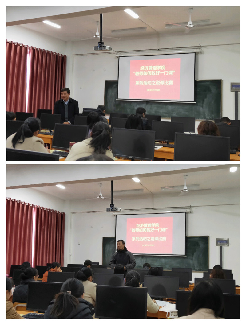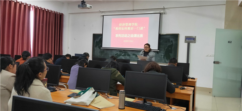 活动分为两个阶段,第一阶段为教研室层面比赛,全员参与,旨在推荐优秀教师参加院级层面说课比赛。第二阶段为学院层面比赛,11月8日,学院层面比赛在20号楼612举行,经管学院全体无工作任务教师参加了观摩和学习。本次院级比赛共有10位教师参加,经过参赛选手的激烈竞争和评委们的投票,最终推选出徐慧卿老师代表学院参加校级层面比赛。比赛最后,于维同教授、杨军教授、杨万春教授分别从课件制作、说课内容、语言运用等方面对本次参赛教师的说课进行了点评,并对全院教师提出殷切的期望。