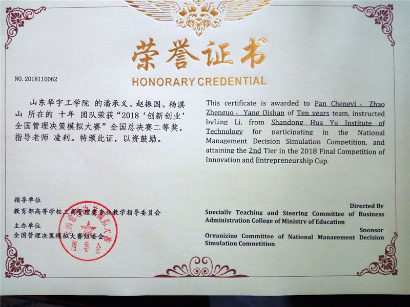 2018年11月9日,由教育部高等学校工商管理类专业教学指导委员会发起的、全国大学生管理决策模拟大赛组委会主办的“高顿财经杯”创新创业全国大学生管理决策模拟大赛在中国石油大学落下帷幕。在历经鏖战来自全国700多所高校、3000余名选手参加的初赛胜出后,面对来自初赛胜出的90余支队伍,不畏强手与之同场竞技,经过激烈角逐,365best潘承义、赵振国、杨淇山三名同学在指导老师凌利的带领下,发扬拼搏精神,克服困难,最终夺得全国总决赛二等奖的优异成绩。