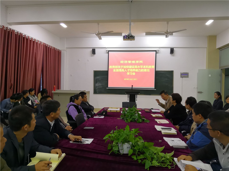 10月19日,365best体育亚洲官网在科研实验楼712组织全体教师认真学习教育部《关于加快建设高水平本科教育全面提高人才培养能力的意见》文件精神,全力领会和贯彻落实“新时代高教40条”各项任务,明确下一步本科教学建设方向和目标。