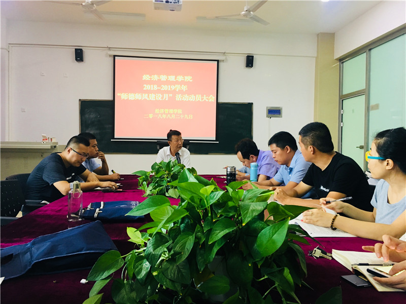 为落实学校鲁华宇院校办字〔2018〕30 号文件精神,提高教师队伍整体素质,引导365best教师做有理想信念、有道德情操、有扎实学识、有仁爱之心的党和人民满意的好老师,大力加强师德建设,努力造就一支师德高尚、业务精湛、结构合理、充满活力的高素质专业化教师队伍,365best自8-9月份开展“师德师风建设月”活动。8月29日上午,“师德师风建设月”活动动员大会在20号楼712召开,院长于维同主持会议,经管学院全体教师参加了会议。