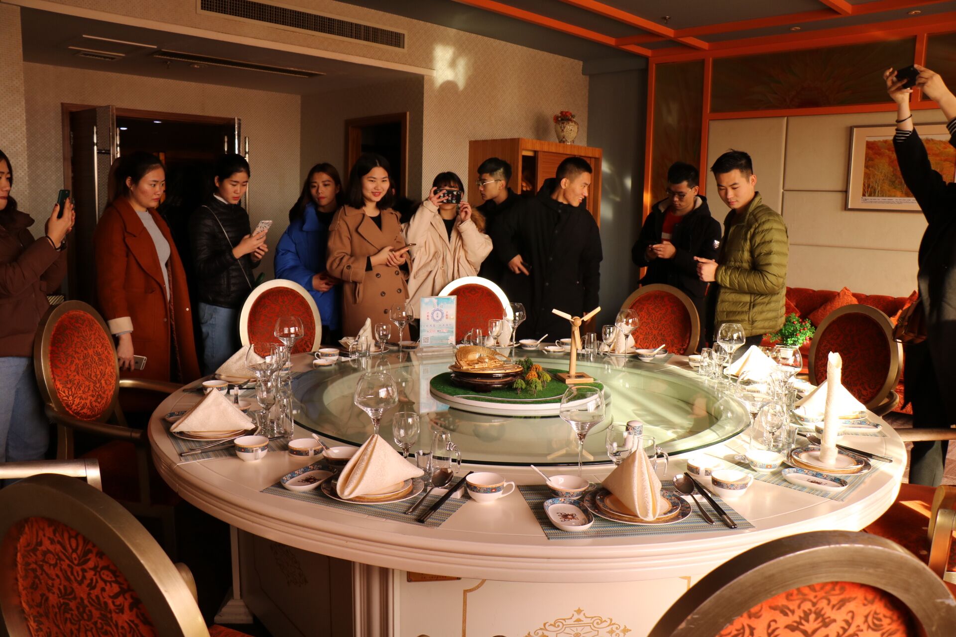 参观客房部布草房期间,学生们认真观察、记录,针对自己感兴趣的问题积极向李经理及布草间负责人请教。在餐饮部,学生们参观了自助餐厅、中式餐厅、西式餐厅,学习了餐具摆放、座次、位次、折花工艺等知识,把书本中的理论知识与实践紧密的联系起来,并纷纷拿出手机拍摄记录,表现出极大的学习热情。