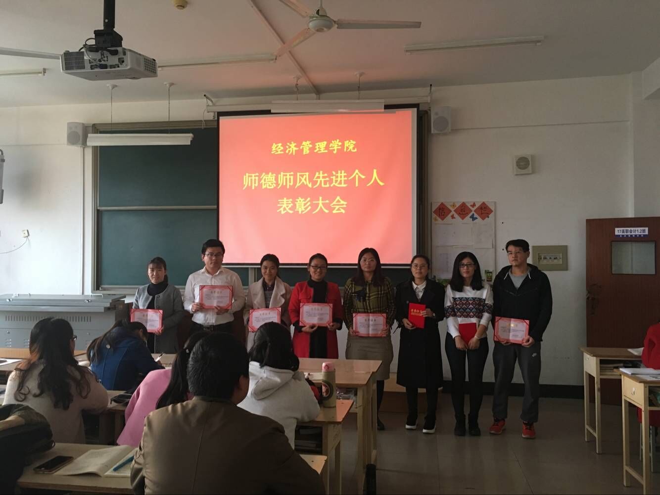 会议在指出了当今社会高校进行师德师风建设必要性的基础上,分析了365best师德师风建设的开展情况。会议授予了在师德师风建设活动中和日常工作中表现突出的十位教师以“师德师风建设先进个人”的光荣称号,颁发证书,并号召全院教师向先进个人学习。