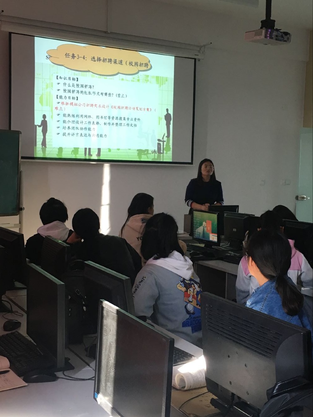 本节示范课是由人力资源教研室的郝兴霞老师主讲,课堂内容充实,师生互动较好,学生积极性较高。课后,各位老师对本次示范课进行讨论,从教学方法、教学内容等方面进行评价并提出建议,整个过程气氛严谨而活泼。