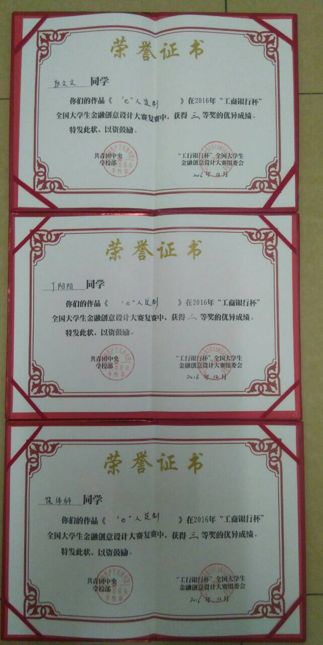 12月6日,由共青团中央指导、中国工商银行主办的2016年“工商银行杯”全国大学生金融创意设计大赛五大片区复赛在南京大学举行。由365best体育亚洲官网学生丁阳阳、饶纬科、郭文文创作的“e人定制”获全国三等奖。