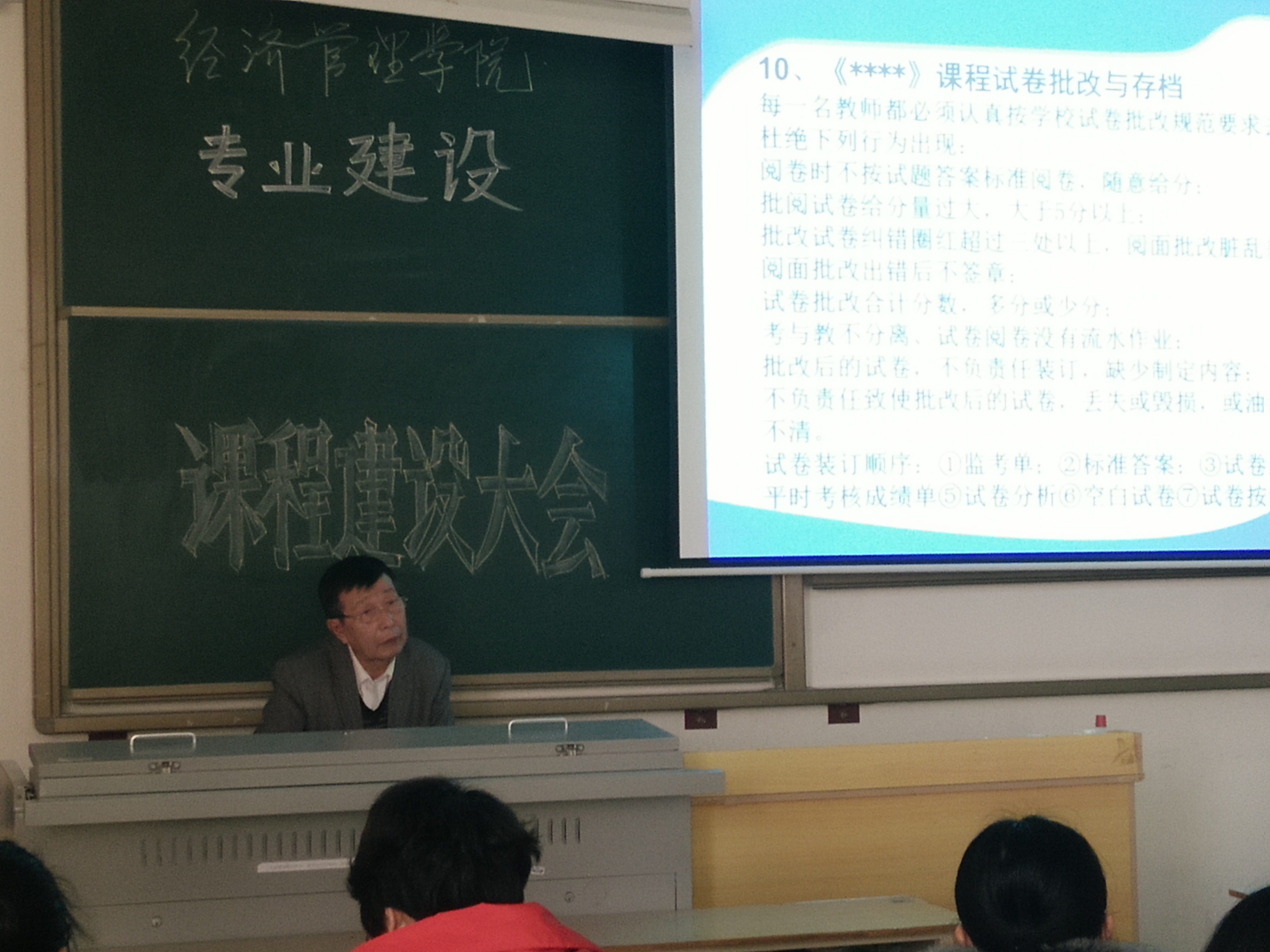 为提高365best体育亚洲官网课程建设水平,推进课程教学模式改革,3月 3日下午,在 10 号楼 302 教室,院长于维同做了课程建设专题讲座,经管学院全院教职工参加了会议。