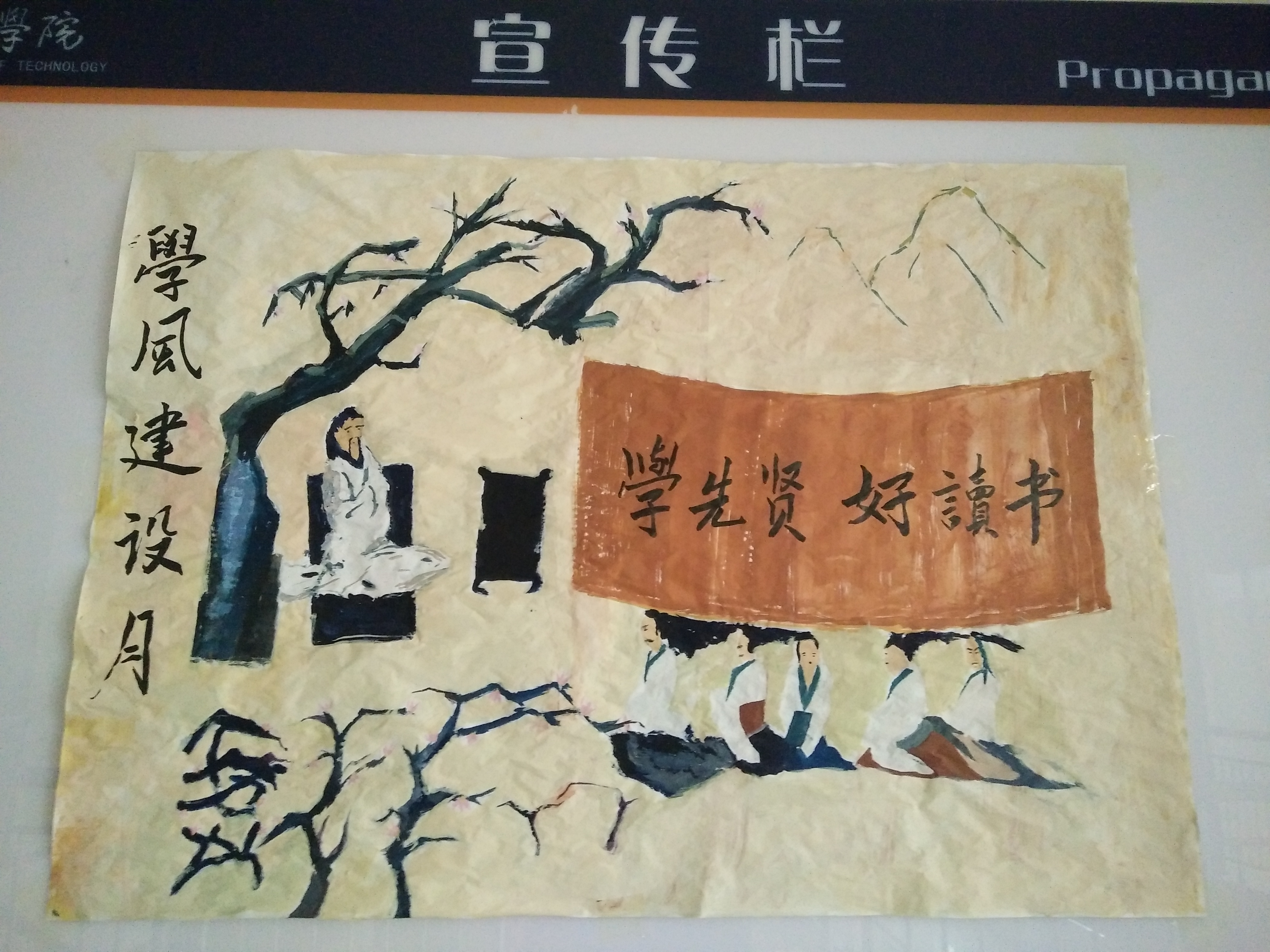 为宣传贯彻好“学先贤,好读书”活动,365best积极发挥宣传栏及班级板报的宣传作用。通过张贴宣传海报,绘制黑板报宣传“学先贤,好读书”活动。同时,各年级辅导员先后两次召开“好读书”主题班会宣传“学先贤,好读书”活动,学院二级网站也积极宣传本次活动,对本次活动进行全方位、多层次、多角度的宣传动员。