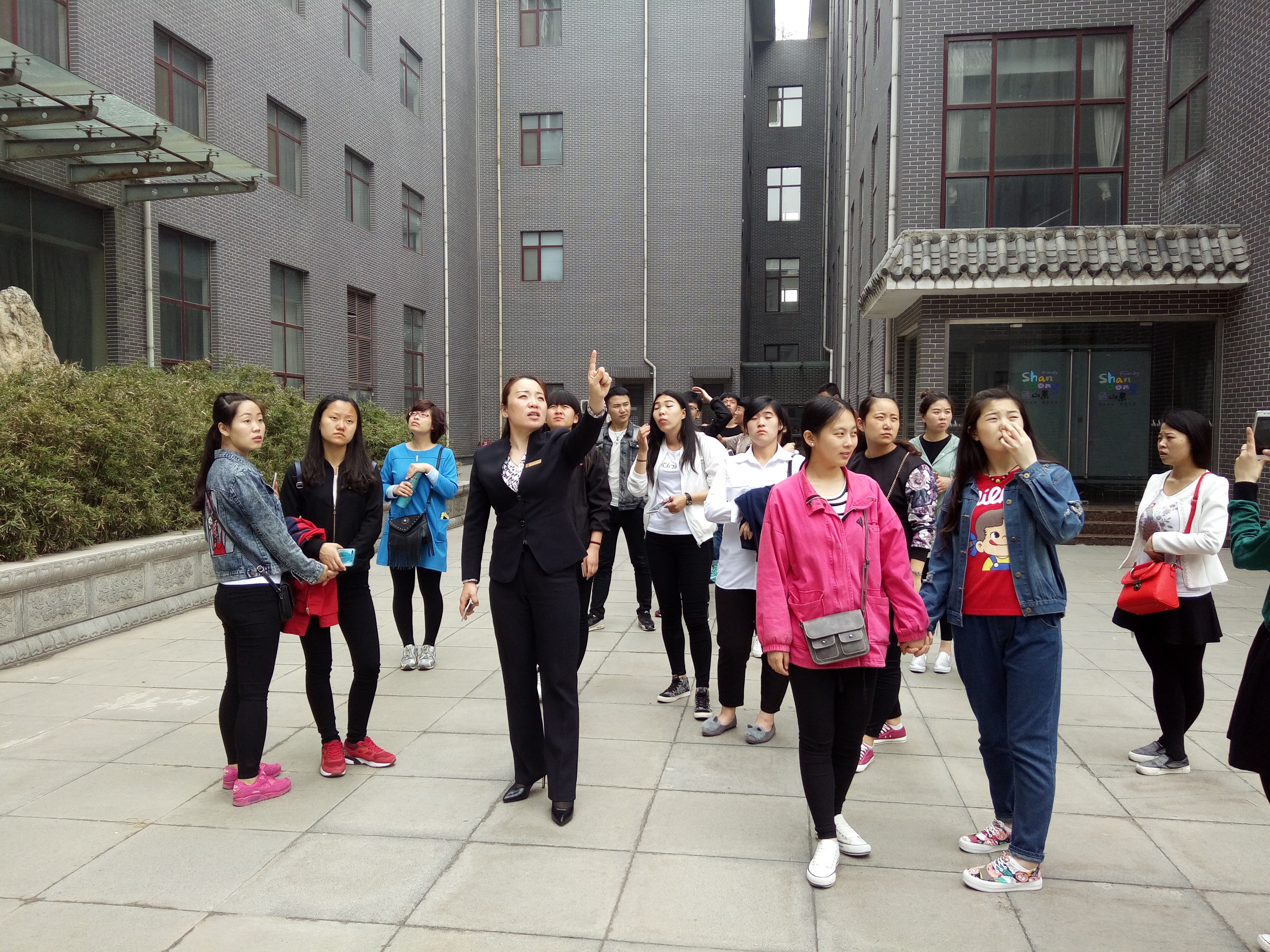 人力资源总监范平立女士给学生讲解酒店外部结构