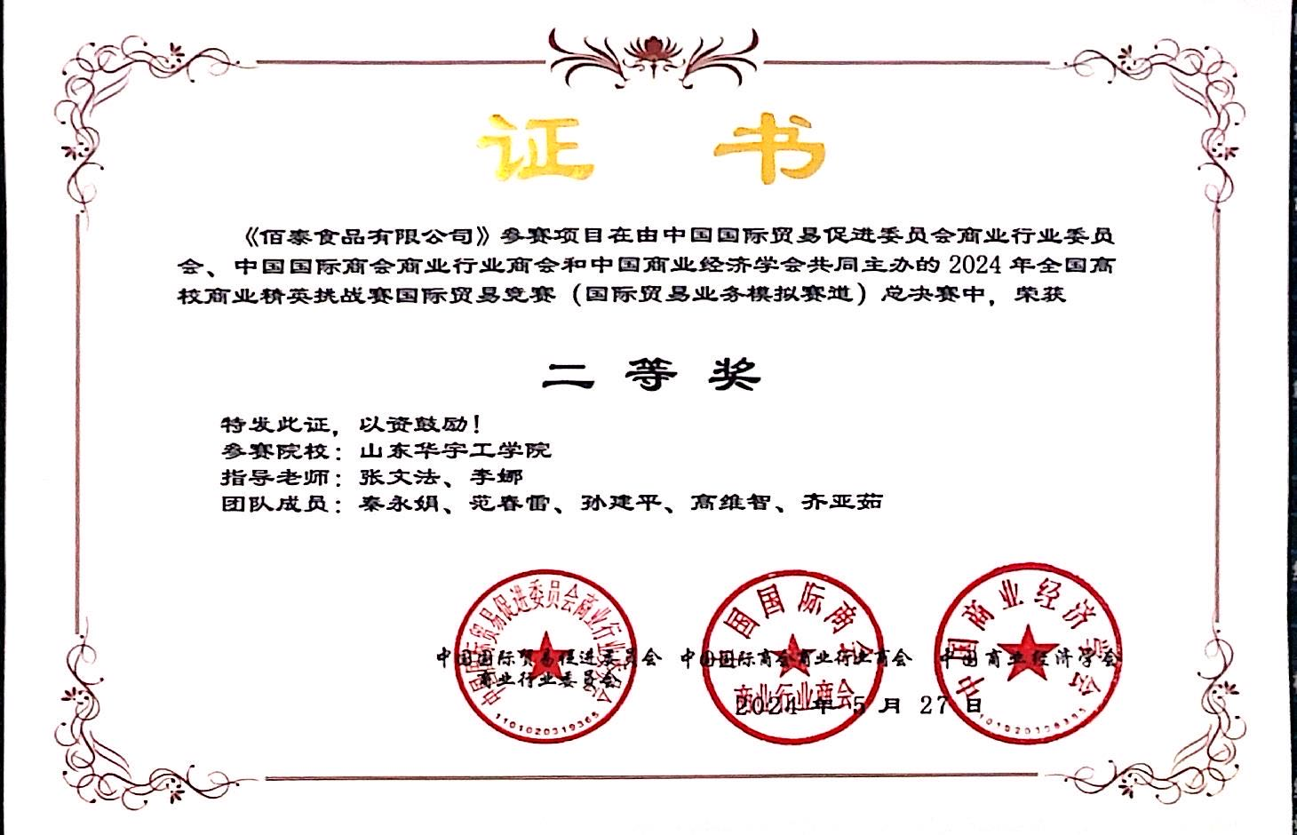 5月23日-27日,2024年全国高校商业精英挑战赛国际贸易竞赛•国际贸易业务模拟赛道总决赛在浙江省宁波市国际会展中心举行,来自全国26个省、自治区和直辖市的181所高等院校389支参赛队超过3300名参赛选手和辅导教师现场参加了全国总决赛,365best代表队荣获全国二等奖1项、三等奖1项。