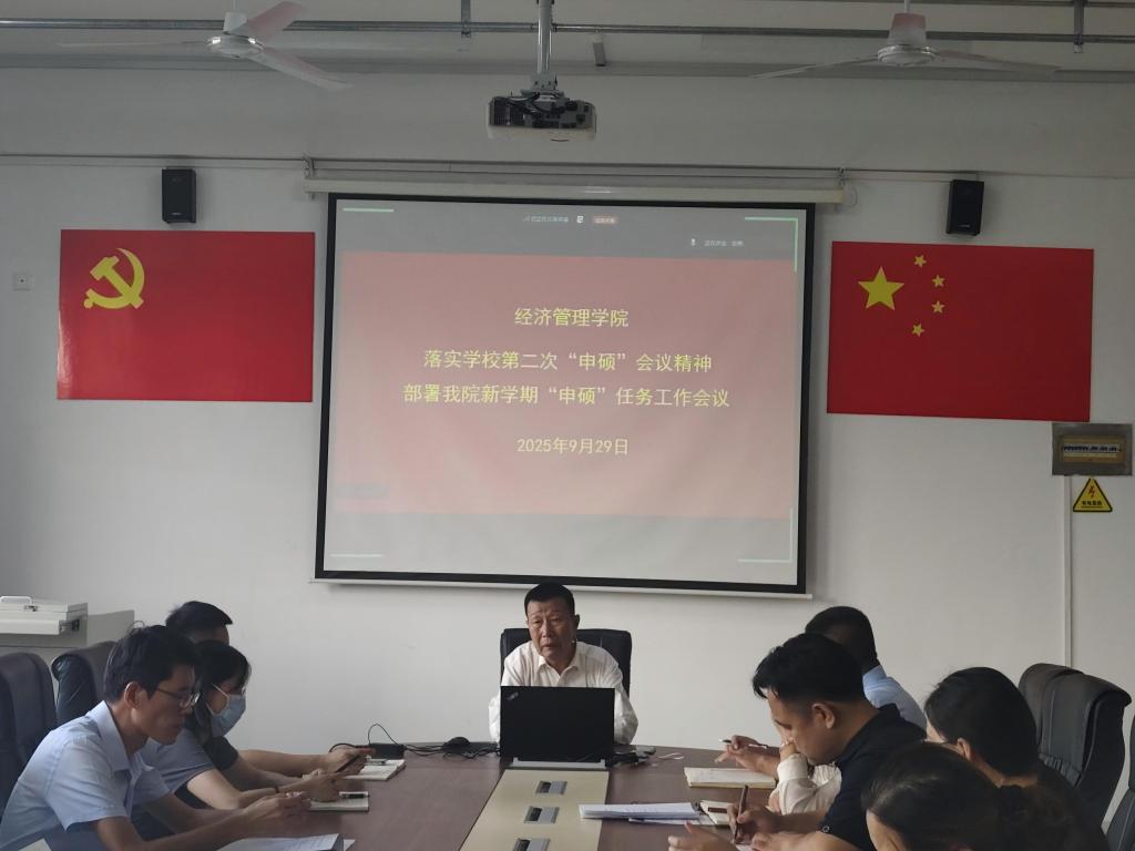 会议要求,要把申硕工作作为学院当前及今后一段时期的重大核心任务,精心组织师资培育、科研攻关、教学成果凝练等专项工作,分层分类开展申硕政策解读与业务培训,切实把学习成果转化为推动申硕工作的具体举措,凝聚全院智慧与力量,攻坚克难、突破难点,为学校成功获批硕士学位授予单位贡献经管力量。(摄影:陈亭禹)