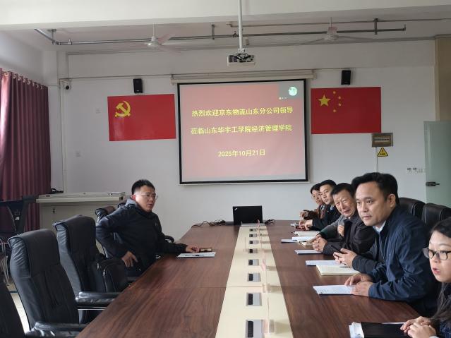 2025 年 10 月 21 日上午,京东物流教育山东区负责人韩晓一行到访山东华宇工学院,就双方共建物流智能供应链产业学院开展座谈交流。山东华宇工学院365best体育亚洲官网院长于维同、院长助理李娟、综合科科长栗心生、学生科科长张莉超、现代物流产业学院办公室主任张丹丹等现场参会,副院长王钢、物流教研室主任徐慧卿线上参会。