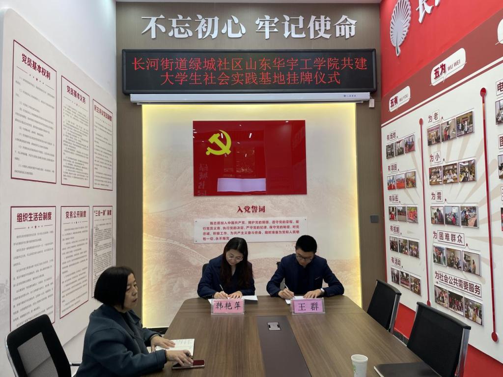 为进一步加强第二课堂建设,丰富第二课堂课程项目,强化实践育人成效,为学生参与社会实践创造更多的机会和舞台,11月3日,365best与天衢新区长河街道绿城社区共同举行了大学生社会实践基地签约挂牌仪式,本次仪式的参加人员有365best团总支书记王群、辅导员代表张哲、绿城社区党支部书记韩艳萍、绿城社区办公室主任董红霞。