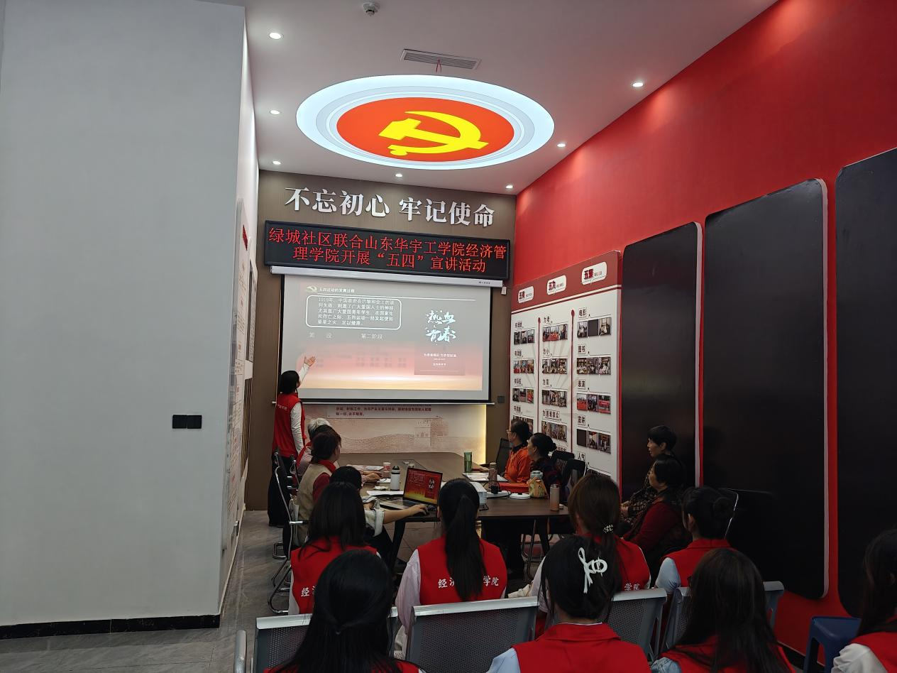 在校内,365best体育亚洲官网团员代表开展了“我与团旗合影”“团旗下宣誓”等主题教育。团员青年们面向鲜红的团旗,庄严宣誓,重温入团初心,坚定理想信念,一张张青春洋溢的面庞与团旗交相辉映,展现了新时代青年昂扬向上的精神风貌。在校外,学院联合德州市绿城社区开展“重温五四精神,赓续红色血脉”主题宣讲,活动中,青年志愿者们与社区老年人齐聚一堂,通过沉浸式历史故事讲述、互动式精神内涵解读,生动再现了五四运动的壮阔画卷。志愿者们以“跨时空对话”的创新形式,将爱国、进步、民主、科学的五四精神与新时代青年使命相结合,让百年精神在思想碰撞中焕发新生。