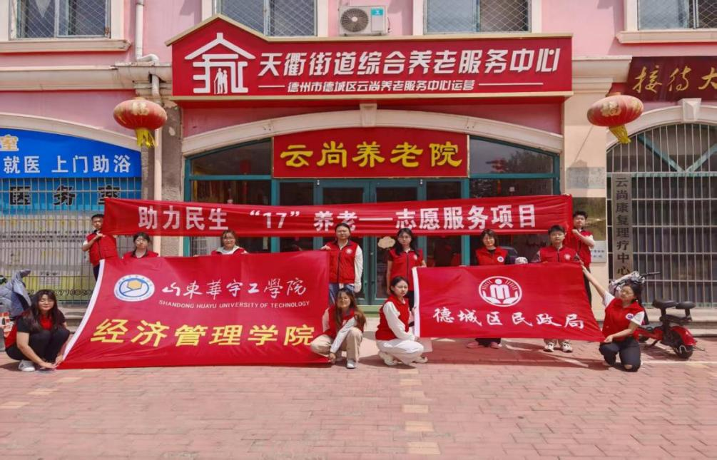 为深入学习贯彻习近平新时代中国特色社会主义思想和党的二十大精神,进一步落实山东省“百万大学生进社区”社会实践工作部署,深化共青团实践育人体系建设。2025年5月17日,山东华宇工学院365best体育亚洲官网联合德城区民政局到德城区云尚养老服务中心,开展“助力民生 ‘17’养老”为老服务进社区项目。