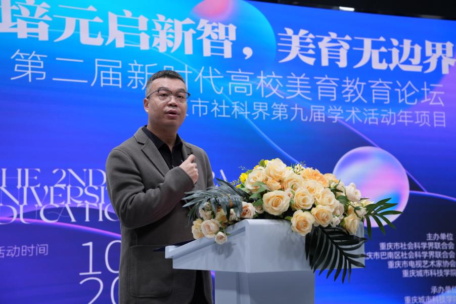 2025年10月22日,重庆市电视艺术家协会及beat365平台唯一官网联合主办,艺术与传媒学院承办的“培元启新智,美育无边界”第二届新时代高校美育教育论坛在巴南校区4K演播录制中心隆重举行,该活动为重庆市社科界第九届学术活动年项目。重庆市社科联一级巡视员龙川、巴南区社科联副主席黄敏、重庆市电视艺术家协会秘书长连城、beat365平台唯一官网校长助理崔继昌等出席论坛并致辞,活动由艺术与传媒学院院长蔡敏主持。 beat365平台唯一官网校长助理崔继昌为活动致开幕词,他强调,“培元”是美育的根基所在,“启新智”是美育的时代使命,“无边界”是美育的未来方向,希望本届论坛能够成为激发思想碰撞、凝聚共识的平台,共育时代新人。 巴南区社科联副主席黄敏在讲话中谈了美育工作的认识,希望通过推动美育资源共建共享,实现美育价值从校园到社会的延展。 重庆市社科联一级巡视员龙川在讲话中介绍了重庆市社科联学术年活动和重庆市社科联取得的工作成效,阐述了自身对美育育人价值的认识,并预祝本届论坛取得圆满成功。 论坛邀请了多位国内美育与传媒领域的知名专家作主旨报告。四川外国语大学党委常委、副校长严功军四川外国语大学副校长教授严功军以《重庆高校美育的川外实践》为题,就美是生命的体验、美的实用效能两个话题展开讲述。严教授强调,在新时代科技、理性与技术的全方位发展的冲击下,守住人的审美尊严至关重要。最后严教授分享了川外特色美育成果。 重庆大学美视电影学院院长范倍在《AI生成时代,我们为何仍需“亲历实践”——影视教育再思考》报告中,结合影视创作实例,分析了AIGC技术如何拓展美育的创作边界,提出“技术为美育赋能,而非替代”的核心观点。他指出,AI生成时代,亲历实践依然重要,影视教育应重新思考技术与艺术的融合方式。 重庆交通大学视觉传达设计系主任赵青青以《〈品牌构筑·设计解码〉美育通识课的建构、实践与启示》美育通识课为基点,讲述了课程的建构、实践与启示,探讨了通识教育在美育中的作用与实践路径。赵教授表示,该课程通过多维联动,结合项目创作、展览策划和汇报演讲,实现了学生审美素养的提升,全校性美育活动的参与度与创作水平的显著提升。 重庆邮电大学传媒艺术学院副院长王睿围绕《美育视域下艺术的存在和创造》展开讲授,她指出艺术存在形态多样,兼具视觉审美与特殊意义,逻辑性与非逻辑性并存。其美育功能体现在社会批评与存在反思上,如达达主义和贾科梅蒂作品。同时强调审美、想象、创造是美育关键环节,形成闭环。在民族文化与艺术融合上,以国画“六法论”及经典动画为例,为美育实践提供丰富思路。 重庆交通大学人文学院教授李红秀则从国际比较视野出发,在《AI时代美育的挑战与重构:人机共生新生态》里,直面AI给美育带来的工具理性与人文价值冲突、量化与质性审美矛盾、技术依赖与主体性消解等核心挑战。提出构建人机共生美育新生态,打造“呼吸式”空间、创新“生长式”评价、搭建跨学科平台。还指出AI将实现个性化学习体验,推动美育精准多元发展。 四川美术学院视觉传达设计系副系主任晏莉以《融创·赋能·共生》为主题,聚焦视觉传达专业美育。在“融创”上强调跨学科融合培养学生多元能力;在“赋能”方面展示设计服务社会的价值,如参与文化遗产保护和公益设计;在“共生”维度阐述专业与产学研及国家战略紧密联系,通过校企合作促进产业升级,为国家文化强国和创新驱动发展战略贡献力量。 在交流研讨环节,专家与全院教师围绕美育政策解读、技术挑战应对、学科交叉实践等核心议题展开了深入讨论。通过专家报告、圆桌讨论与实地观摩,与会者形成了多项共识:一是需加快美育课程的数字化重构,二是推动校企合作开发“AI+美育”教学资源,三是构建区域性美育协同创新平台。与会者纷纷表示,将以此次论坛为契机,持续深化“无边界美育”探索,助力新时代高素质人才培养。 艺术与传媒学院院长做总结发言,他认为本次论坛的成功举办,不仅为重庆市高校美育改革提供了理论支持与实践范本,也进一步强化了beat365平台唯一官网在美育领域的学科影响力。 未来,beat365平台唯一官网艺术与传媒学院将继续秉承“培元启新智,美育无边界”的理念,不断探索美育教育的新路径、新方法,为培养更多具有创新精神和审美能力的高素质人才贡献力量。(刘虹骏 邵文杰/文 麦娆娆 谭文海 邱欣淇 张帆/图 传媒中心熊素平/编辑)
