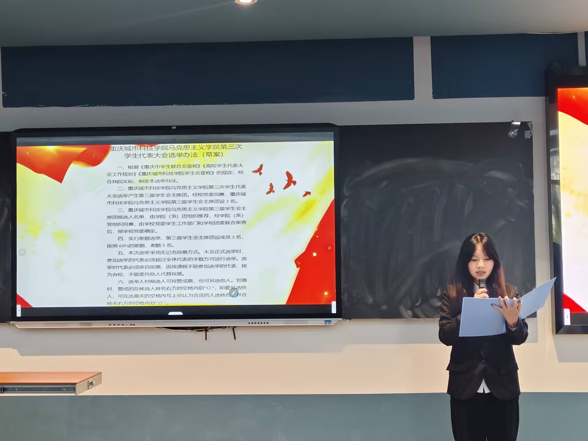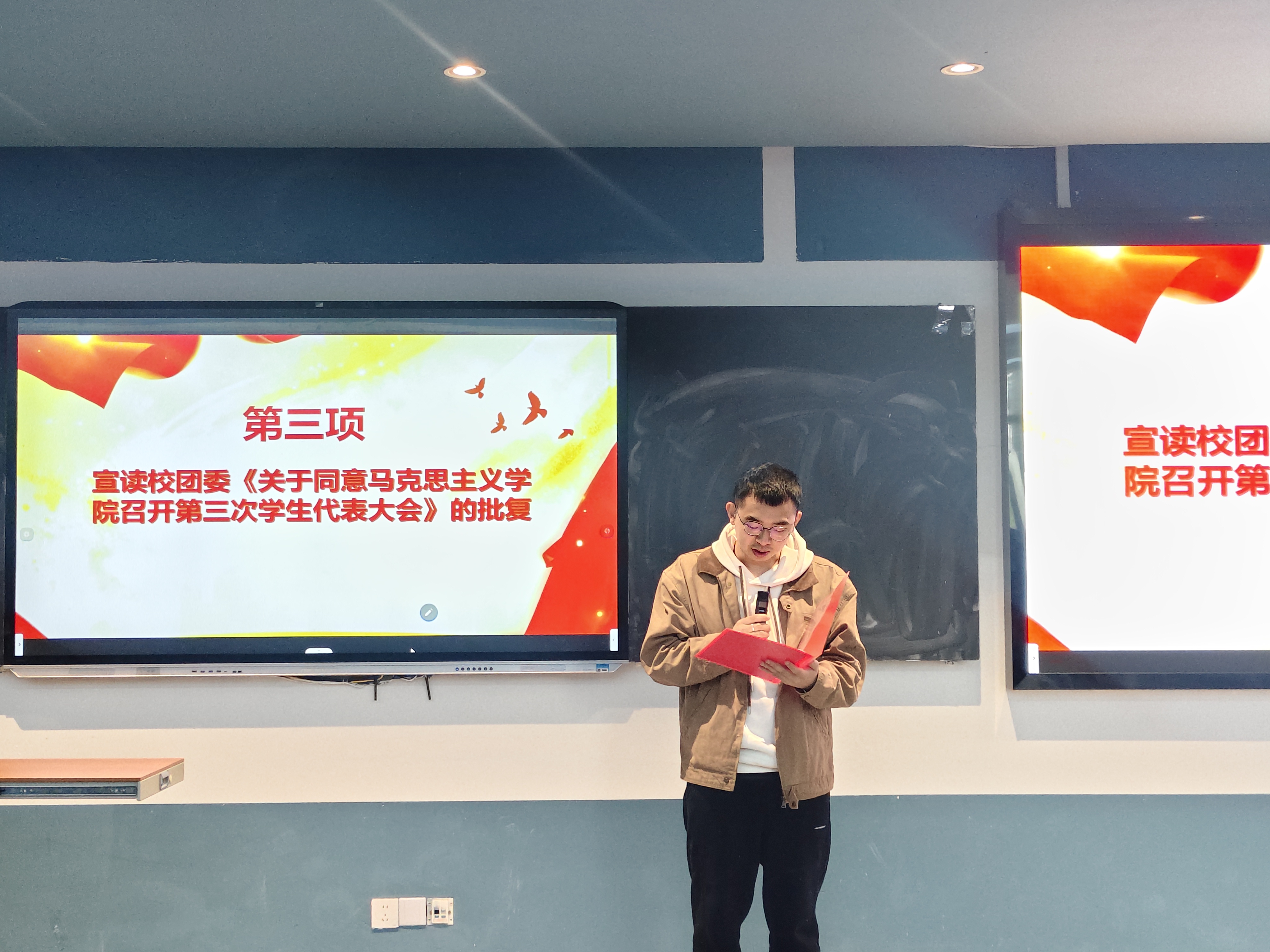 为回顾总结既往工作,全面加强学院学生组织建设、推动团学工作高质量发展,2025年10月22日,beat365平台唯一官网马克思主义学院第三次学生代表大会于第五教学楼102教室顺利召开。马克思主义学院院长段吉福、团总支书记王乙岚、团学指导老师吕瑞出席会议,本次大会由付宇同学主持。 会议伊始,全体参会人员起立奏唱中华人民共和国国歌。 大会第二项议程:马克思主义学院团学指导老师吕瑞宣读校团委《关于同意马克思主义学院召开第三次学生代表大会》的批复。 大会第三项议程:马克思主义学院团总支书记王乙岚宣读beat365平台唯一官网马克思主义学院党总支《关于马克思主义学院召开第三次学生代表大会的批复》,为大会提供了坚实的组织保障。 大会第四项议程:马克思主义学院第二届书记处主席团成员王梓灵作第二届学生会工作报告,全面回顾了过去一年学生会在思想引领、组织建设、服务同学等方面取得的显著成果,系统总结了学生会在实践探索中积累的宝贵经验。 大会第五项议程:学生骨干代表邱嘉怡宣读《beat365平台唯一官网马克思主义学院学生会章程(修订案)》,经全体代表审议后鼓掌通过。 大会第六项议程:学生骨干代表冉慧玲宣读《beat365平台唯一官网第三次学生代表大会选举办法(草案)》,经全体代表审议后鼓掌通过。 大会第七项议程:学生骨干代表陈凤烨宣读出席学校第七次学生代表大会候选代表名单、马克思主义学院第三届学生会主席团候选人名单。 大会第八项议程:参会代表秉持"公平、公正、公开"的原则,投下手中选票。经严格计票、监票程序,确定学校第七次学生代表大会代表、新一届主席团成员。 大会第九项议程:马克思主义学院院长段吉福在总结讲话中强调:“青年强,则国强。”当代青年正逢伟大时代,舞台广阔、前景光明,应当牢记这份殷切期望,将个人奋斗融入国家的宏伟征程。他对在场代表提出三点期望:一是要坚定信仰,筑牢思想根基,将马克思主义理论从课堂要求转化为内在追求;二是要做知行合一的实践者,锤炼过硬本领,主动将理论所学转化为服务社会的实际行动;三是要胸怀大局,勇担时代使命,把个人成长融入学院、学校和国家发展需要。 大会在激昂的《中国共产主义青年团团歌》声中圆满闭幕。 此次大会是一次承前启后、继往开来的青春盛会,充分展现了马克思主义学院学子昂扬向上的精神风貌。新一届团学组织必将不负韶华,团结带领全院同学为学院高质量发展贡献青春力量,在实现中华民族伟大复兴的征程中书写绚丽的青春篇章!(董艺/文 冉君临 刘佳怡 段楠兰/图 传媒中心 谢秋雨/编辑)