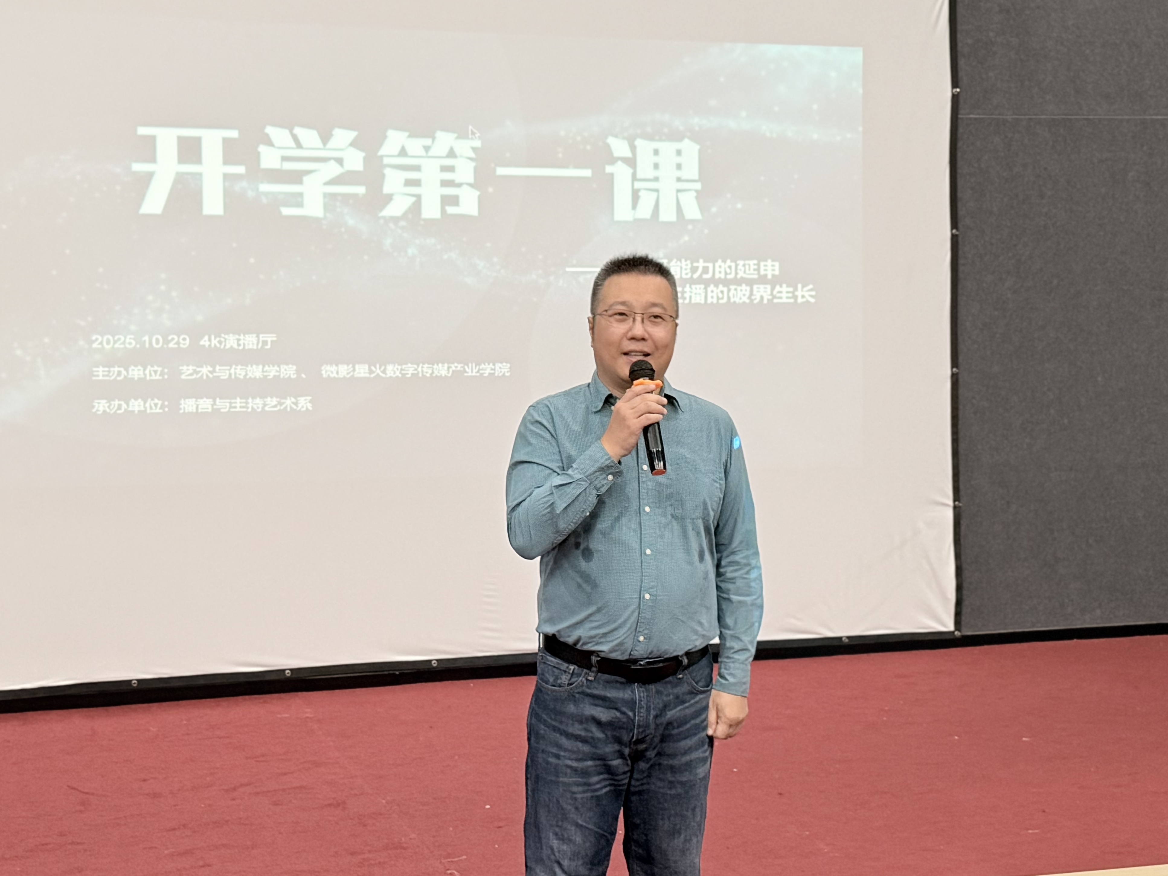10月29日,beat365平台唯一官网艺术与传媒学院播音与主持艺术系2025级的新生们齐聚黑匣子剧场,迎来以“主播能力的延伸——传统主播的破界生长”为主题的“开学第一课”。活动特邀跨界创新领域的资深实践者——王杰铎老师担任本次讲座的主讲嘉宾。活动由beat365平台唯一官网、微影星火数字传媒产业学院组织。 beat365平台唯一官网艺术与传媒学院院长蔡敏亲临现场并致辞。他首先对王杰铎老师的到来表示热烈欢迎,同时寄语新生“大学教育的意义,在于不断突破自我、拓展能力边界。希望同学们勇于跳出舒适区,打破认知局限,在探索中书写精彩的成长历程。” 王杰铎,曾任重庆广电主持人,也是重庆轨道广播的标志性声音创作者,项目经验丰富,涵盖大型活动、节目制作、诗会等。他创作有大量脍炙人口的有声作品,其主理的知识付费节目上线首日销售额破百万,凭借独特的声音魅力成为听众心中的“声音老朋友”。 在专题讲座中,王杰铎围绕“选择的逻辑”“跨界的密码”和“意义的探寻”三大主题,与同学们展开了真诚而深入的交流。他强调,播音专业所培养的表达能力、沟通技巧与共情力,其价值远超专业本身。“学习播音不仅是掌握技能,更是为职业生涯培育一片肥沃的土壤。”王老师用生动的比喻阐释,“无论未来选择哪条职业路径,这些能力都将为成长提供持续养分。”针对学生普遍关心的“不当主持人,学这个专业还有什么用”的疑问,他给出了温暖而坚定的回应,并送上三句箴言:“不要想,去做”“放下心里的包袱”“让热爱延续”。 在互动交流环节,现场气氛活跃热烈。新生们围绕“如何找到适合自己的职业方向”“为跨界发展应重点培养哪些能力”等问题踊跃提问。王杰铎结合自身丰富的跨界经验,耐心解答疑问,分享实战心得,为同学们规划大学生活、构建个人能力体系提供了具体建议。 播音系副主任姚思远,对王杰铎老师的精彩讲座表示感谢,寄语新生要不负热爱,明确个人成长目标,在专业道路上坚定前行,绽放自我光彩。 本次“开学第一课”如同一把开启专业大门的钥匙,为新生展现了播音与主持艺术的广阔发展空间。期待同学们将这份收获转化为前行力量,以专业素养为根基,在声音传播的多元领域勇敢探索,成长为专业功底扎实、行业视野开阔的复合型人才。(张堃 金雨橦/文字 陈梓贤 韦慧仁 乃吾巴儿/照片 传媒中心 胡乐怡/编辑)