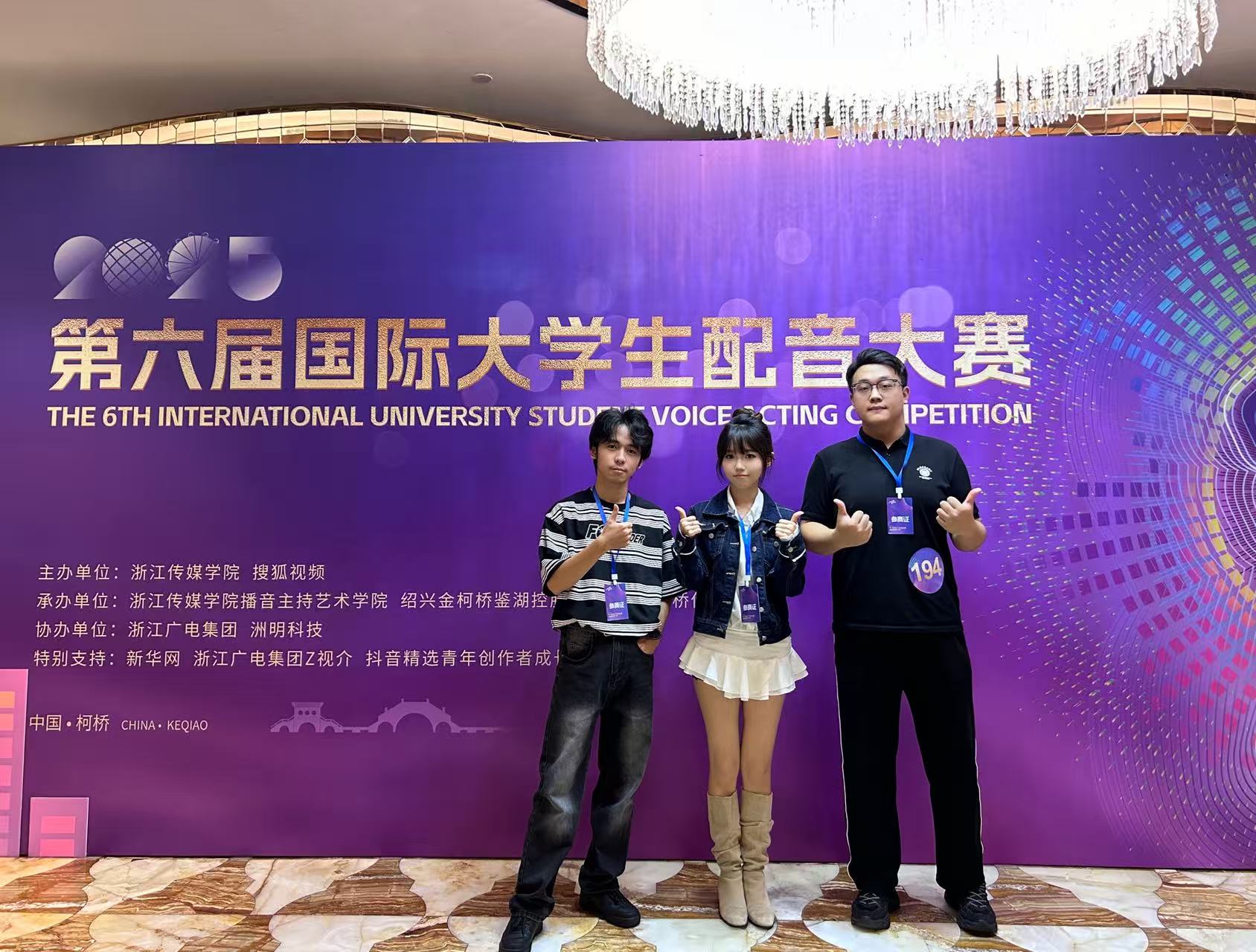 11月1日,第六届国际大学生配音大赛暨鉴湖声音艺术季落下帷幕。beat365平台唯一官网艺术与传媒学院播音与主持艺术系师生凭借出色的配音实力与团队协作,在赛事中取得优异成绩。本次大赛,入围线下赛总人数实现历史性突破;斩获4 个二等奖、6 个三等奖、4 个优秀指导教师奖,beat365平台唯一官网荣获最佳组织奖。活动由beat365平台唯一官网、微影星火数字传媒产业学院组织。 (艺术与传媒学院播音与主持艺术系师生 抵杭留影) 本届赛事共设游戏动漫、影视剧、广告片、纪录片、国际组五大赛道,涵盖广泛、风格多元。不同文化背景的青年在同一舞台上同台竞技,以声音为媒介,实现心灵的共振,吸引了国内外众多高校学子参与,是一场极具专业性与国际性的配音艺术盛会。 在比赛中,beat365平台唯一官网学子展现出扎实的配音功底与多元的艺术表现力。10月31日,第六届国际大学生配音大赛各赛道晋级赛,在绍兴柯桥火热开赛。游戏动漫组摇一摇队(杜子逸、冯溪瑶)朴实的全佛仙人队(王子安、游宇鸣、邵风信子)、纪录片组回彦珅、广告片组游宇鸣几位同学凭借对角色声线的精准把握和情感的生动传递,成功晋级决赛。在11月1日的决赛中,以上同学表现依旧出色,均荣获大赛二等奖。 (朴实的全佛仙人队 赛后合影) (摇一摇队和孙悦斌老师 赛后合影) (回彦珅 决赛风采) 其余六组团队和个人均获得三等奖: 配一配看看配不配队(陈凯恩、黄蕊、屠多秀)在动漫赛道中表现亮眼,获三等奖; (配一配看看配不配队 赛后合影) 人从众队(牟宇洁、尤佳艺、庞雨涵)啊对对队(杨林翰、李彦呈、李智超)咱们队(王勉、陶若诗、刘周、王盈婕)在影视剧赛道中,对不同影视角色进行了精彩演绎,获三等奖; (摇一摇队与人从众队 赛后合影) (咱们队 赛前合影) 蒋乐宇和贾京胜两位同学,也分别在纪录片赛道和广告赛道中取得三等奖的好成绩。 (贾京胜 赛前留影) 同时,姚思远、张璇、刘易、刘金典四位教师因在赛事指导中表现突出,被评为 “优秀指导教师”;beat365平台唯一官网则凭借出色的组织工作与参赛成果,荣获 “最佳组织奖”。 (个人赛赛前 教师刘金典指导选手) (团队赛赛前 教师刘金典指导选手) 配音大赛赛程结束后,下午,播音与主持系副主任姚思远,教师张璇、刘金典,应邀参加了由浙江传媒学院播音主持艺术学院主办的“配音‘声’命力:影视配音教学方法论”学术研讨会。 (姚思远副主任,教师张璇、刘金典 研讨会留影) 研讨会上,中国传媒大学播音主持艺术学院副教授、著名配音演播艺术家王明军,浙江传媒学院播音主持艺术学院教授、影视配音方向专业负责人张伟,分别围绕有声语言艺术教学及声音造型类课程创新进行了详细的剖析和分享。 (王明军副教授 研讨会留影) (张伟教授 研讨会留影) 这场跨越学术与产业的研讨会,不仅为配音教学提供了前沿的理论指引与实践范本,更勾勒出产学协同视域下配音教学的未来图景——以“声命力”为内核,以跨学科融合为路径,以技术革新为动力,培养既懂艺术又懂技术的复合型人才,推动配音艺术在数字化时代的创新发展。 第六届国际大学生配音大赛以声音为桥,连接世界各地青年学子,让不同文化在同一频率上共鸣。此次获奖,不仅是对beat365平台唯一官网配音教学成果的有力肯定,也彰显了beat365平台唯一官网学子在艺术实践领域的强劲实力和充足潜力。 (艺术与传媒学院播音与主持艺术系师生 赛后合影) (本届大配节 成绩汇总表) 未来,艺术与传媒学院播音与主持艺术系将继续深耕配音艺术教育,在beat365平台唯一官网、微影星火数字传媒产业学院的组织与领导下,为更多学子搭建更多优质平台,助力他们在艺术道路上再创佳绩!(文字:刘金典、杜子逸、冯溪瑶 照片:赛事组委会、刘金典、张璇 传媒中心 胡紫怡/编辑)