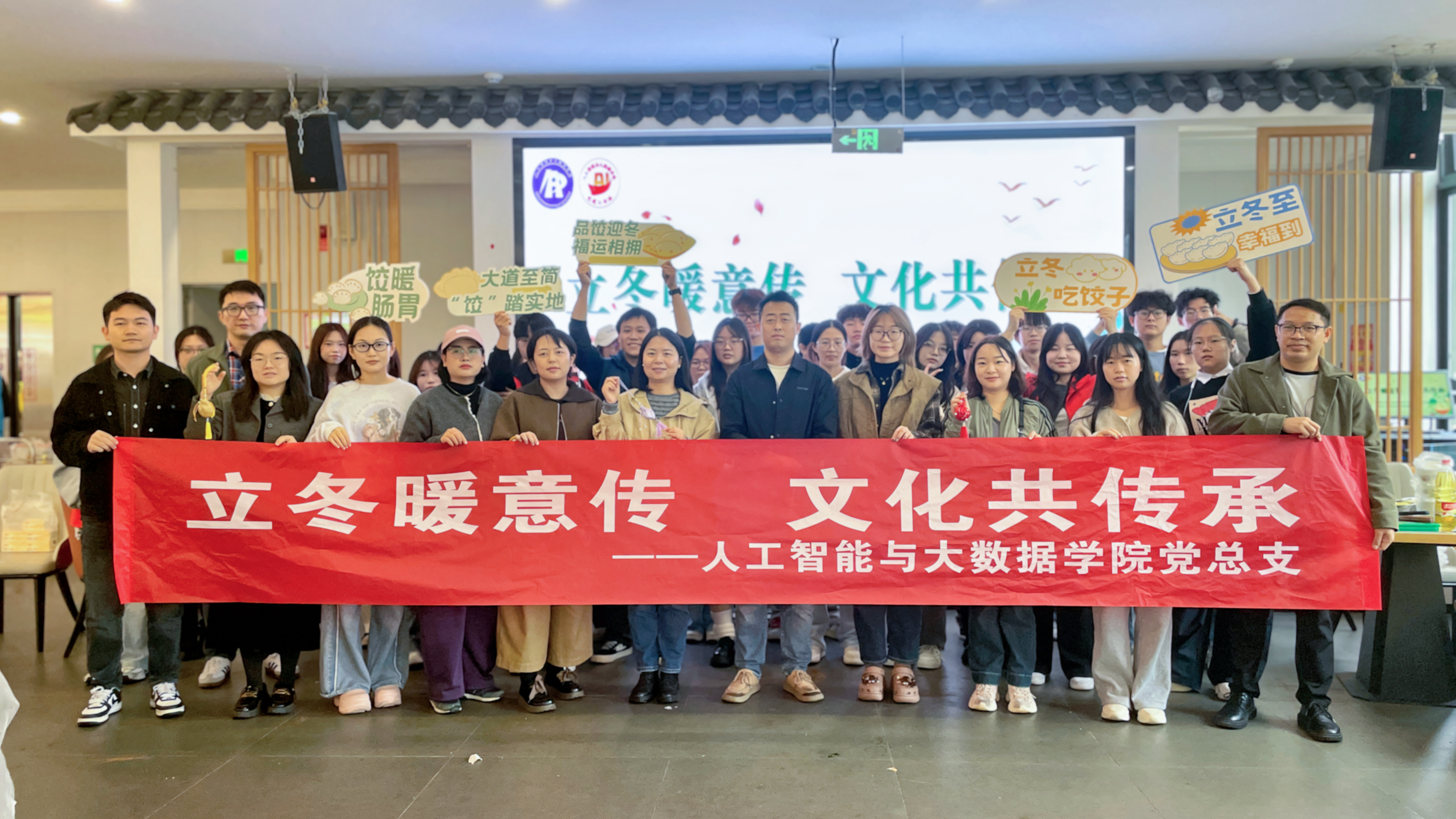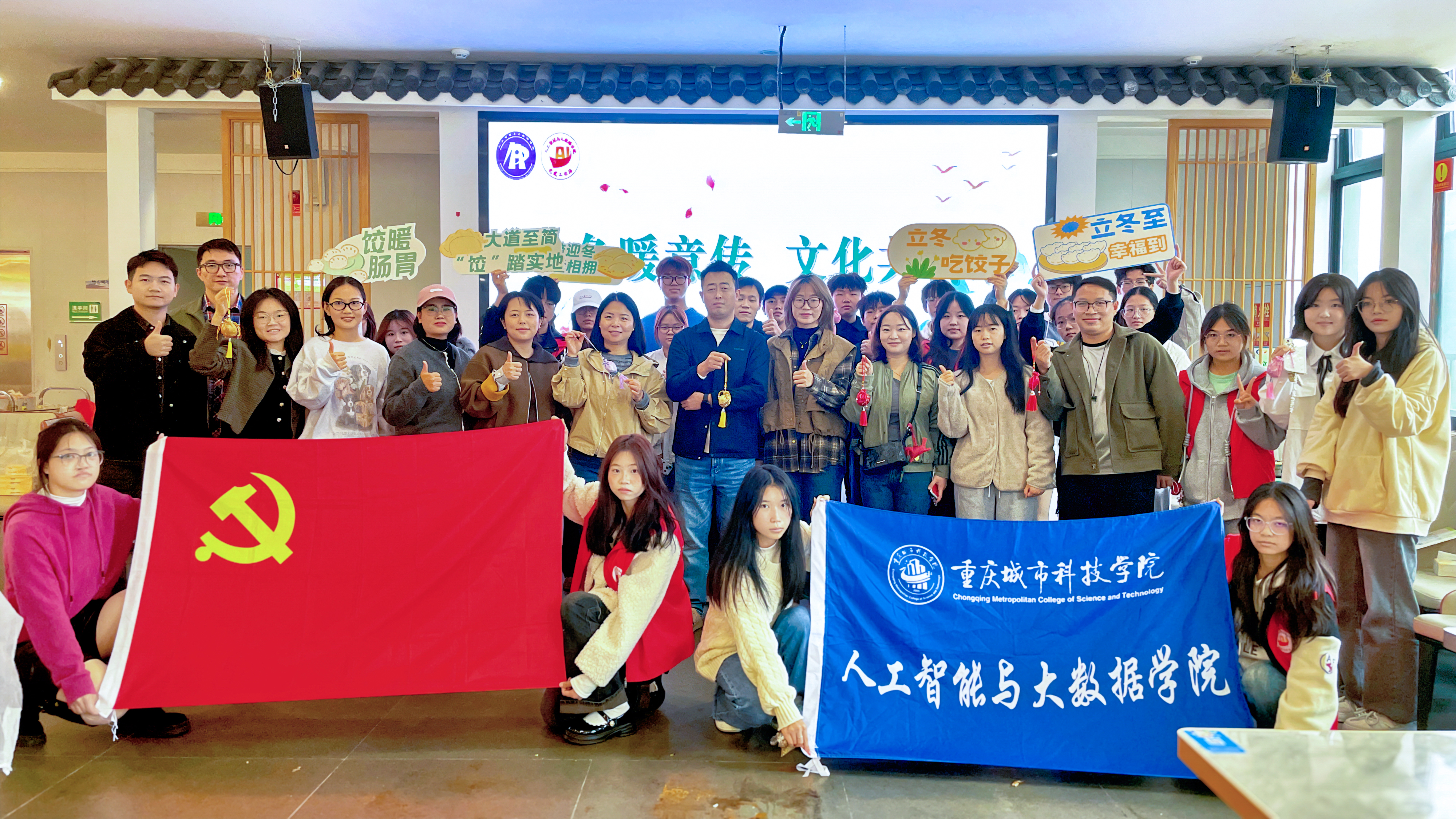 “立,建始也;冬,终也,万物收藏也。”立冬,是冬季的起始,一阵阵寒风袭来,为弘扬中华民族传统节气文化,增进同学们对“立冬”文化内涵与民俗习惯的了解,人工智能与大数据学院党建工作站于11月7日在巴南校区食堂三楼北山苑开展以“立冬暖意传,文化共传承”为主题的活动,人工智能与大数据学院党总支副书记邓杰予、唐继龙,党总支组织委员、党建工作站指导老师张姣,党建工作站指导老师张华平、莫帮洋、黄圆圆,以及人工智能与大数据学院师生共同参与此次活动。本次活动由戴雨涵主持。 一、溯源立冬,解锁养生之道 首先,主持人戴雨涵以“立冬溯源”为主题分别从天文历法、民间习俗与养生文化三个层面,详细介绍了立冬的由来、古代“迎冬”祭祀的庄重传统,以及南北地域的特色民俗差异。随后,她结合冬季气候特点,科普了实用的冬季保健知识,引导同学们在感悟传统文化魅力的同时,也掌握科学养生方法。 (主持人戴雨涵介绍立冬) 二、指尖技艺,包出立冬温暖 在包饺子环节中,师生们分组协作,在欢声笑语中剥蒜、剁菜、包馅,分工明确,有条不紊。活动特别设置“最美饺子”评选环节,各小组纷纷推选出造型精巧、创意十足的饺子参与角逐。一时间锅气蒸腾、暖意弥漫,食堂内洋溢着劳动的快乐与集体的温暖。 (师生分工包饺子) 三、 药香袅袅,传播中华文化 活动最后,药香袅袅,沁人心脾。老师们与同学们共同参与香囊制作环节,大家撑开香囊的开口,将准备好的艾草、肉桂等天然香料仔细封存于囊中。方寸香囊,不仅凝聚着对节气的感知与生活的祝福,更成为传承千载中华文化的生动载体。 (师生共同制作香囊) (合影留念) 热气驱寒,更传递组织温暖;药香沁人,亦承载文化底蕴。 本次活动让同学们在亲身体验中弘扬劳动精神,凝聚了团队力量,更以积极饱满的状态和温暖互助的情谊,共同迎接冬天的到来。(人工智能与大数据学院 文/罗妍 图/夏子艳 韩馨 张蓉 视频/夏诗颖 彭鑫 传媒中心 张学强/编辑)