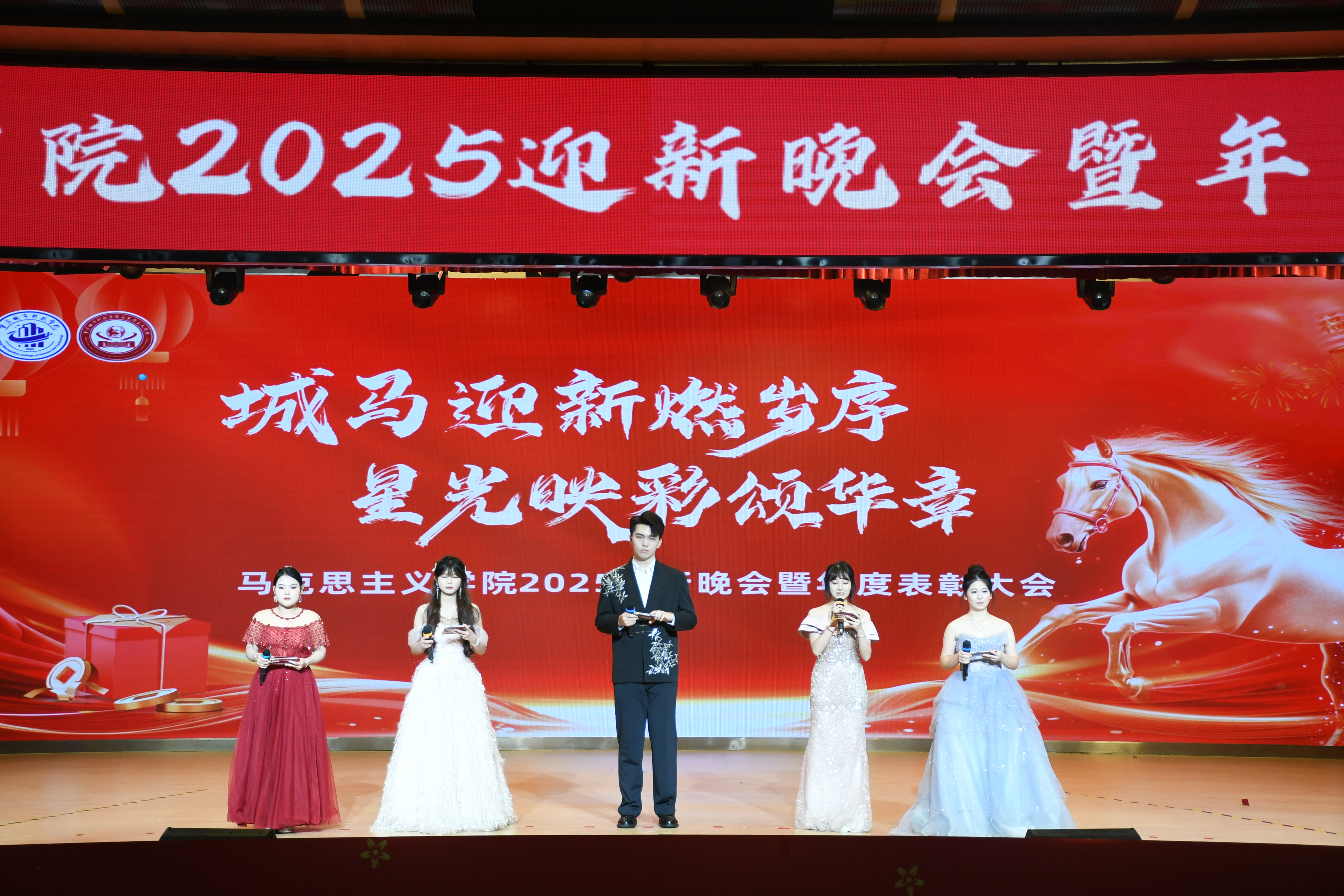 为共祈佳年,展现学院师生卓越风采,马克思主义学院于2025年12月17日19:00在第一学术报告厅举行2025迎新晚会暨年度表彰大会。学校党委书记、政府督导专员、马克思主义学院党总支书记王银峰,院长段吉福,副院长张沙沙,党总支副书记涂佳,思想政治教育系主任柳建国,习思想、毛中特教研室主任陈胜婷,马原、近代史纲要教研室主任彭伟,德法、形策教研室主任肖和平,教学实践中心副主任胡军,团总支书记王乙岚与全院师生共同见证属于马院的璀璨夜晚。晚会由赵思韩、李吉、向乐琦、王欢、赵哲言主持。 开场舞《ITS OK IM OK》 焰起舞惊鸿,光凝院聚潮。开场舞以动感旋律与活力舞姿拉开晚会序幕,用富有张力的舞蹈演绎,彰显出马院学子逐光向上的青春风采,更以跃动的节拍叩响逐光燃梦的序章,以飒爽的身影勾勒星耀永续的蓝图。 领导致辞 聚光成炬,领航前行。院长段吉福为晚会致开幕词。他首先代表学院领导向全体师生致以崇高的敬意与美好的祝福。段院长在致辞中总结,过去一年学院锚定办学定位、紧扣育人核心,扎实推进各项工作,在教学科研、团队建设、人才培养等领域硕果盈枝。他寄语全体教师坚守为党育人、为国育才的初心,锤炼师者风骨与育人本领;勉励广大学子深耕马克思主义理论,以知促行、以行践知,在实践中经风雨、见世面、长才干,成长为马克思主义的坚定信仰者、积极传播者和模范践行者。同时,他号召全院师生凝心聚力、奋勇争先,“与真理同行,与时代同步”,携手擘画2026年学院发展的崭新蓝图。 灯火初上,歌声荡漾。马院学子以青春为笔,以梦想为墨,在辞旧迎新的夜晚点亮第一束光。愿每一个起舞的日子都不被辜负,每一段启程的岁月都温暖如歌。 歌伴舞《如愿新吟》 悠扬歌声牵引情感脉络 灵动舞蹈诠释岁月温情 视听融合让“如愿”的美好愿景具象化 为舞台注入细腻绵长的感染力 小品《非诚不找》 幽默诙谐的剧情 聚焦当代人社交与情感话题 通过鲜活的角色演绎和接地气的台词 在爆笑桥段中传递积极的生活态度 兼具趣味性与共鸣性 第二篇章:燃梦新程·岁序华章 星光为伴,步履铿锵。马院学子将炙热的理想注入时代的脉搏,让奋斗的足迹绽放在崭新的序章。这里是荣誉的舞台,也是梦想再次出发的地方。 舞蹈《better things》 以跃动节拍为底 糅合现代舞的张力与流行舞的活力 舞者用利落肢体 勾勒对“美好”的向往 每一瞬皆迸发向上的青春能量 宣读表彰文件(教职工) 党总支副书记涂佳宣读教职工表彰文件。这份荣誉是对他们过往耕耘的诚挚认可,亦是激励全院师者踔厉前行的精神火种。 学校党委书记王银峰为2025年度教学比赛突出贡献奖、科研奋进奖 获得者颁奖 院长段吉福为2025年课程建设贡献奖、优秀青年骨干奖获得者颁奖 副院长张沙沙为2025年度大中小学思政课一体化工作先进个人奖、优秀管理服务奖获得者颁奖 情景剧《灯影里的红色旋律》 以“灯影”为意象载体 串联起红色故事与时代记忆 生活化的场景演绎和富有感染力的台词 让红色精神在细腻剧情中自然流淌 第三篇章:星耀征途·同心筑梦 星火汇聚成光,同心逐梦华章。今夜以喝彩为伴,用掌声照亮每一段奋进的旅程。同心同行,不负热爱;熠熠星光,正映照着马院人携手奔赴的远方。 歌曲《我的歌声里》 温柔细腻的旋律为底色 磁性嗓音缓缓诉说藏在歌声里的故事 将遇见的惊喜与记忆的温度融入每一句演唱 让熟悉的曲调唤起全场共同的情感共鸣 宣读表彰文件(学生) 团总支书记王乙岚宣读学生表彰文件。榜样是一面旗帜,更是一种力量。此次表彰不仅是对同学们过往努力与成绩的肯定,更是对“ 德、博学、求是、创新”精神的生动诠释。 思想政治教育系主任柳建国 习思想、毛中特教研室主任陈胜婷为党团建设先进个人代表颁奖 马原、近代史纲要教研室主任彭伟为争先创优先进个人代表颁奖 德法、形策教研室主任肖和平为赋能成长先进个人代表颁奖 教学实践中心副主任胡军为成长之星代表颁奖 舞与秀《芭比驾到》 打破传统表演边界 通过舞蹈展现动感节奏 借走秀呈现时尚巧思 粉色系视觉与俏皮动作相呼应 让“芭比”形象既可爱又充满力量 第四篇章:华章永续·福启新元 岁月流转,华章不息。马院学子用舞步踏响未来的节奏,以歌声传递崭新的祝愿。愿这一刻的温暖与感动,伴随莘莘学子迈向更加灿烂的明天。 民族舞《彩云之南》 以云南少数民族舞蹈元素为魂 舞者裙摆翻飞如孔雀开屏 指尖流转似溪流轻淌 灵动舞姿勾勒出彩云之南的秀丽风光与民族风情 让观众仿佛置身边陲仙境 歌曲串烧《声行万里》 从悠扬民谣到激昂金曲 用歌声丈量山河万里 在旋律切换间 带领观众开启一场跨越时空的听觉旅行 唤醒不同记忆里的情感共鸣 抽奖环节 幸运轮转,惊喜迭出。红包雨掀起阵阵欢乐热潮,幸运抽奖如流动星光点亮现场。这一环节以互动凝聚全场热情,让轻松愉悦的氛围弥漫会场,也让师生间的温暖祝福随幸运一同传递。 青春正好赴华章,携手扬帆破浪时;马院同心共逐梦,凝心聚力绽芳华。晚会的帷幕在温馨与激昂交织的合影中缓缓落下。这不仅是一场流光溢彩的视听盛宴,更是一堂润物无声的思政课、一次涤荡心灵的精神洗礼。它生动诠释了马院师生团结进取、意气风发的精神风貌,也为学院新一年的奋进征程奏
