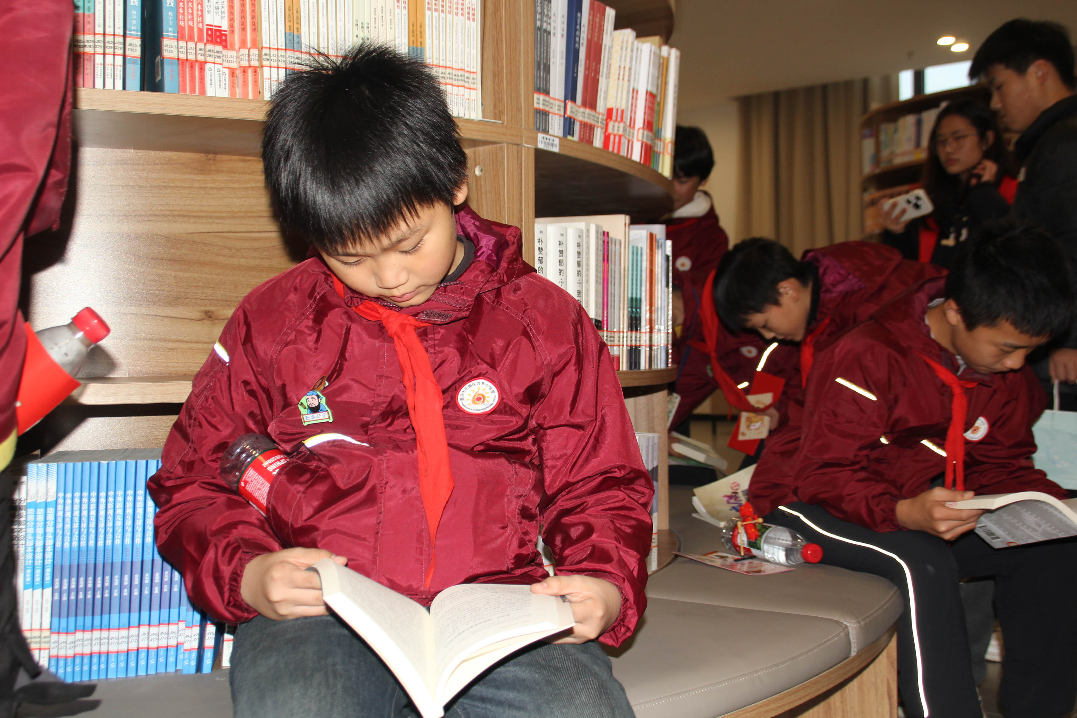 图书馆内,层叠书架构筑立体知识体系,书籍的分类逻辑与装帧设计兼具智育与美育价值。孩子们在志愿者指导下学习检索借阅,实操中掌握信息获取方法;静坐窗边阅读时,光影与文字交融,让知识探索满含美学意趣,求知欲与审美力在书香中交汇。