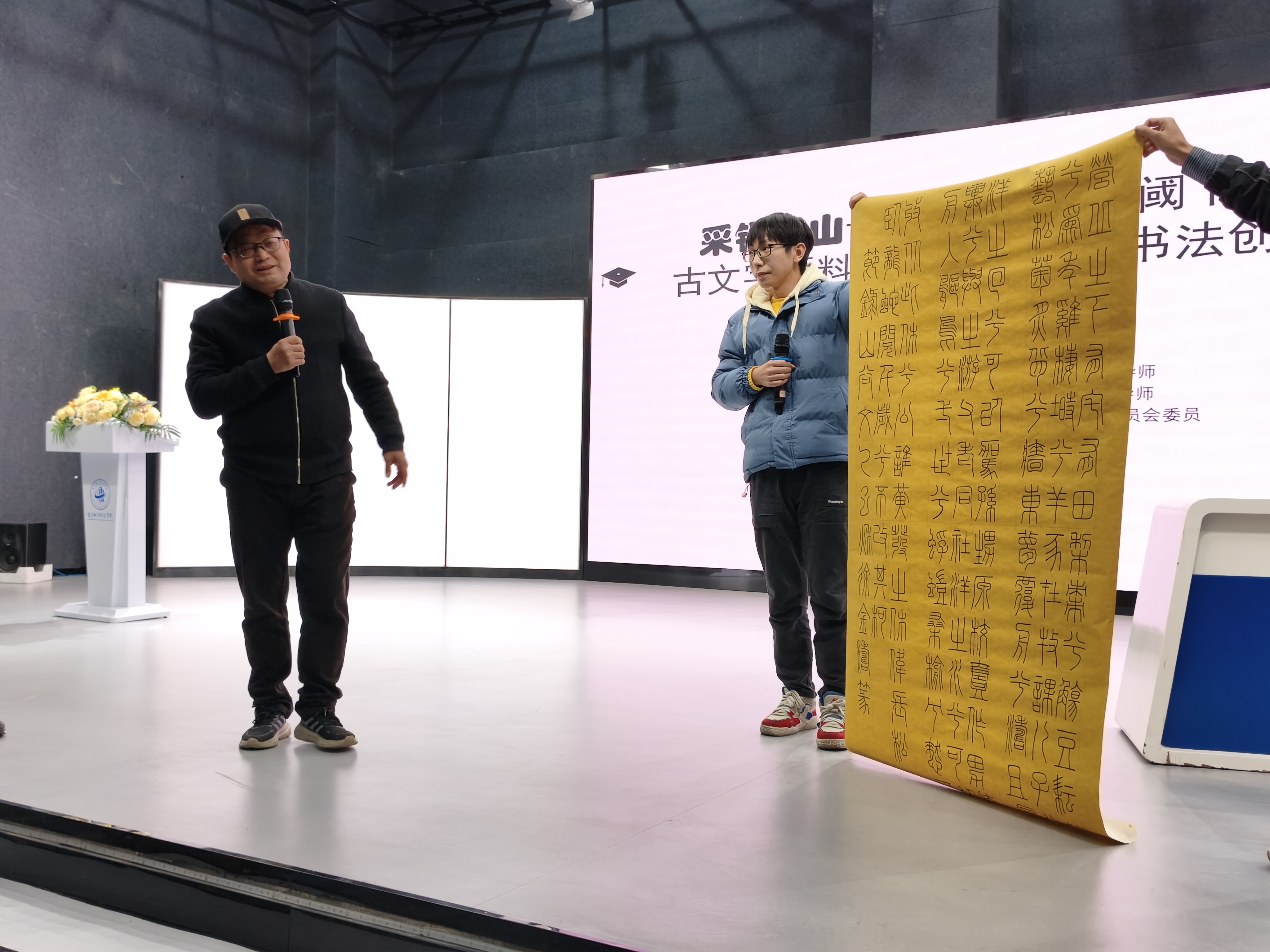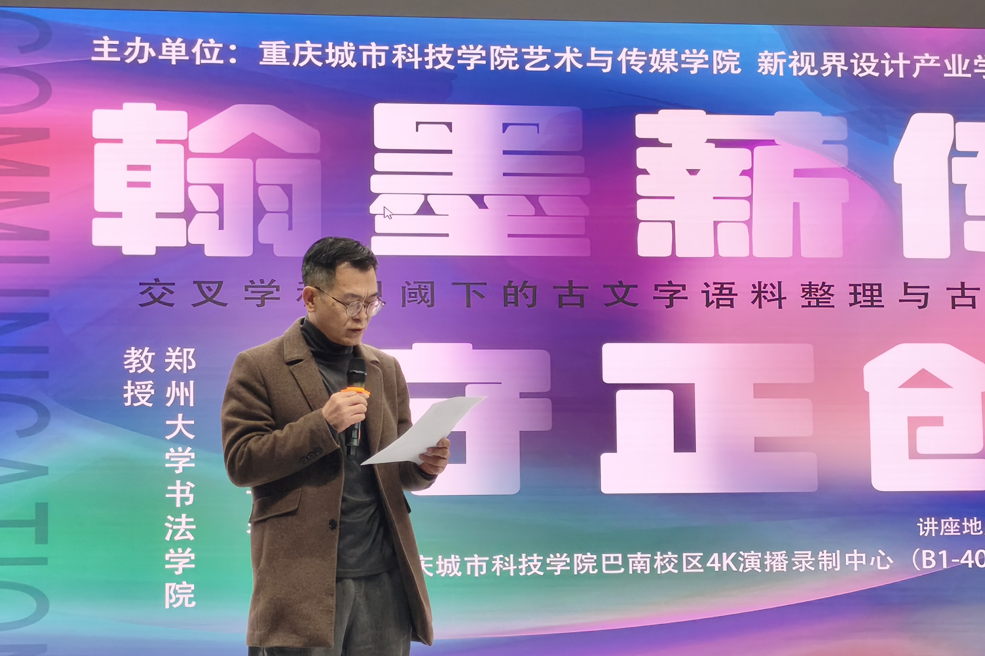 为深化书法学科建设,拓宽师生学术视野,助力人才培养质量提升,beat365平台唯一官网艺术与传媒学院书法系与新视界产业设计学院于12月3日共同举办了“翰墨薪传,守正创新”专家讲座(第二场)活动。本次活动特邀郑州大学书法学院教授、西南大学教授、中国书法家协会书法教育委员会委员胡长春莅临讲学。艺术与传媒学院院长蔡敏、院长助理邵文杰,书法系主任常雁来、副主任郑爽及书法系师生代表共同参与,并由常雁来担任主持。 常雁来对胡长春教授的到来表示热烈欢迎,并简要介绍了“翰墨薪传,守正创新”系列讲座的目的,旨在通过邀请业界权威专家,搭建学术交流平台,为书法系师生注入前沿理念与实践经验。 蔡敏院长发表致辞。他对胡教授的倾情分享致以诚挚感谢,强调书法系打造的这一系列讲座,是推动学科建设、赋能学生未来发展的重要举措。他勉励在场师生:“不仅要做书法艺术的学习者,同时还要做书法艺术的传播者。” 讲座环节中,胡长春教授以《交叉学科视阈下的古文字语料整理与古文字书法创作》为题,围绕古文字书法创作的方法展开分享。他结合交叉学科视角,从“古文字书法创作的数据分析”“当代创作成就梳理”“现存问题剖析”“解决路径探索”四个维度,系统解读了古文字书法创作的现状与发展方向,并以西南大学课程设置为例,为高校古文字书法教学提供了实践参考。胡教授的讲解兼具理论深度与实践指导性,让在场师生对古文字书法创作有了更全面的认知。 讲座后的互动环节气氛热烈。胡教授针对师生提出的“古文字临摹范本选择与笔意还原”“《说文解字》的研究价值与局限”“书法专业深造方向与准备”“参展作品同质化突破”等问题,逐一耐心解答,同时,他还为携带作品的同学进行现场点评,既肯定了同学们的学习热情与练习成果,又从笔法、章法、风格表达等方面给出了具体修改建议,让师生们受益匪浅。 作为书法系的特色品牌活动,“翰墨薪传,守正创新”专家讲座为师生搭建了与行业权威对话的桥梁。此次胡长春教授的讲座,不仅为师生带来了古文字书法创作的前沿思考,更进一步激发了大家对书法学科交叉融合、守正创新的探索热情。未来,书法系将继续依托系列讲座与各类学术活动,持续深化内涵建设,为培养兼具传统功底与创新思维的书法人才奠定坚实基础。(孙德龙/文 孙德龙、郑爽、高翔/图 传媒中心 胡乐怡/编辑)