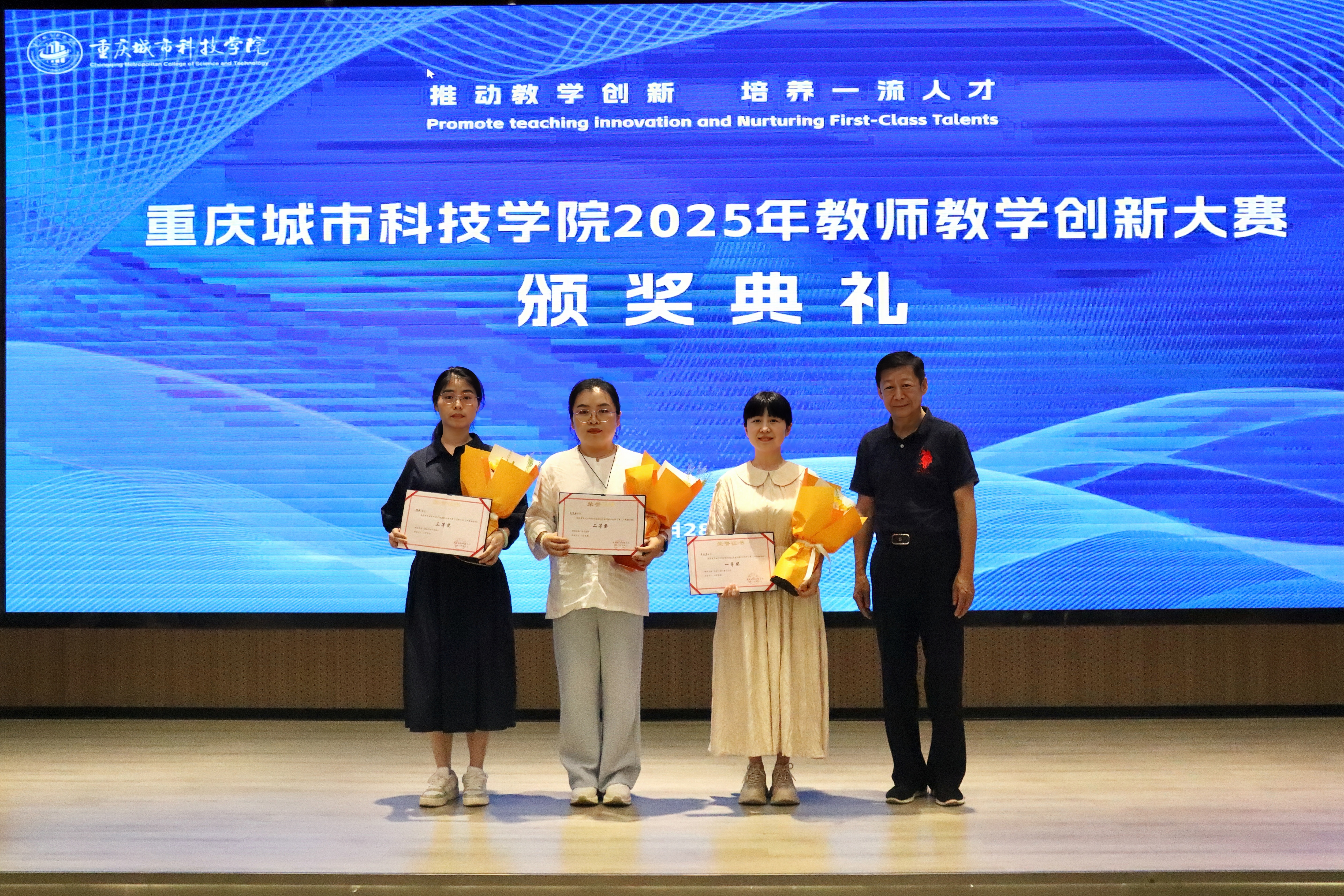 2025年5月28日下午,beat365平台唯一官网在求是堂举办了“2025年教师教学创新大赛交流分享会暨颁奖典礼”。校长黄宗明、副校长杜元虎、特邀专家张玲教授、雷佳乐副处长及各二级学院领导、教师代表出席了本次活动。会议由教务处处长王颖主持。 活动伊始,王颖对与会嘉宾表示热烈欢迎,并简要介绍了活动目的和流程。此次活动旨在展示优秀教学成果,分享创新经验,并对获奖教师进行表彰。 在交流分享环节中,五位优秀教师代表依次登台,分享了他们的教学创新实践。人工智能与大数据学院颜烨老师以《算法分析》课程为例,展示了前沿技术与教学的融合;人文学院曾静、陈安琪老师分享了《现代汉语1》“新文科”课程教学创新;电气工程与智能制造学院代鸿教授从《工程数学A》课程出发,探讨了基础课程的教学优化;艺术与传媒学院姚思远老师生动呈现了《普通话语音与播音发声》课程中的思政元素;经济管理学院黄翀老师则通过《管理会计》课程,展现了产教融合的实践成果。五位教师的精彩分享赢得了现场阵阵掌声。 随后,活动进入颁奖环节。杜元虎为2023年教师教学创新大赛及产教融合赛道的获奖教师颁发了奖项,黄宗明则为2025年大赛的获奖教师颁奖。现场气氛热烈,掌声不断。 颁奖结束后,黄宗明校长总结讲话。他首先向获奖教师表示祝贺,并充分肯定了所有参赛教师在教育教学创新中的努力与成果。他鼓励教师们正视差距、保持定力,同时强调学校将持续加大对教学创新的支持力度,包括加强专家指导、完善激励机制、搭建交流平台等。最后,黄校长以“教育的真谛在于持续的进步”与全体教师共勉,号召大家以本次活动为起点,继续深耕教学创新,为学校高质量发展贡献力量。 本次交流分享会暨颁奖典礼在热烈的氛围中圆满结束。活动不仅交流展示了教学创新成果,也为未来的教育教学改革指明了方向,充分展现了beat365平台唯一官网教师团队的创新精神与教育热忱。(传媒中心 胡甜甜/编辑)