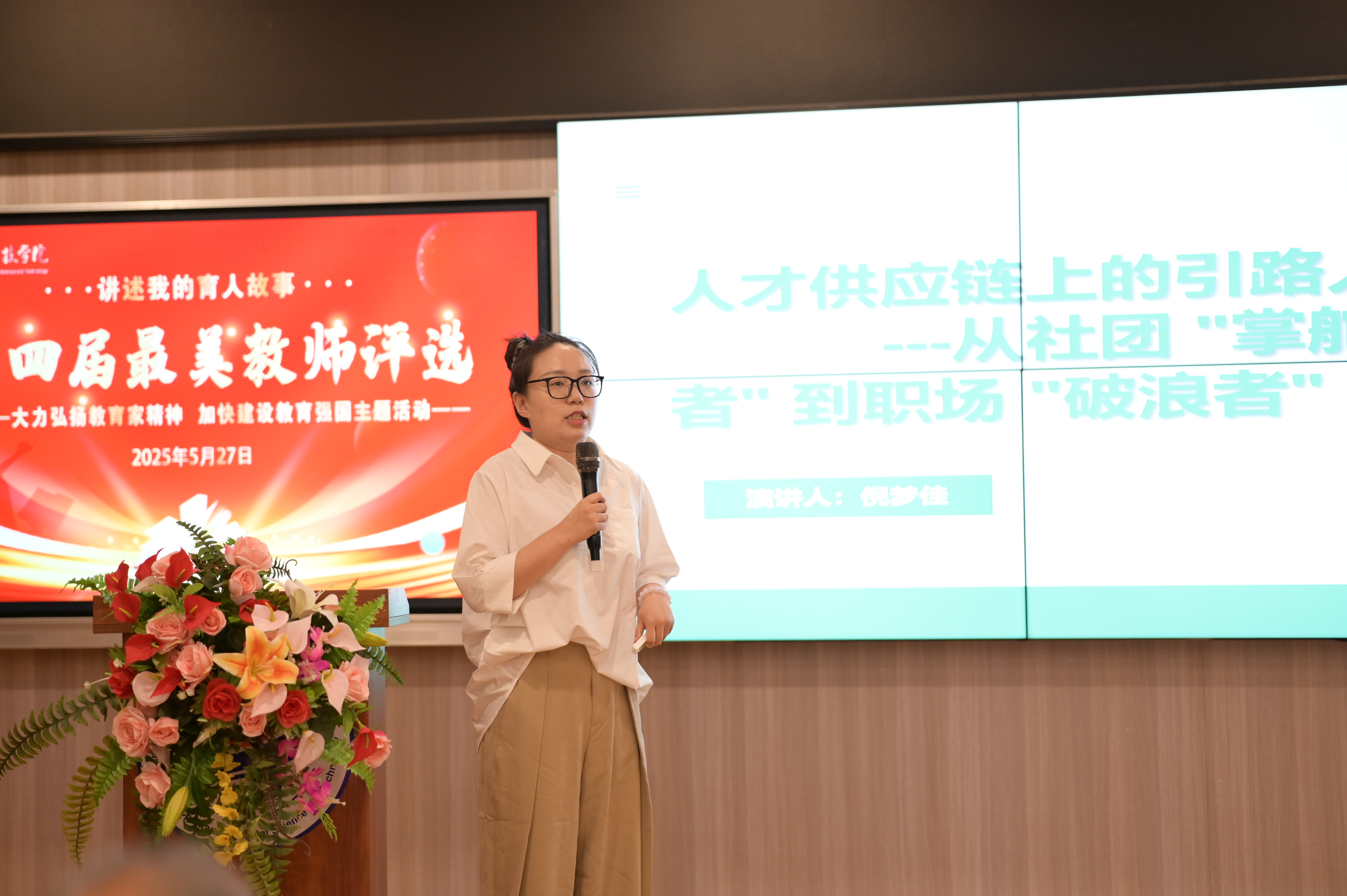 为大力弘扬教育家精神,深入实施教育家精神铸魂强师行动,根据教育部教师工作司、重庆市教育委员会的工作要求,结合学校第四届最美教师评选活动,5月27日晚,beat365平台唯一官网在第六教学楼金融仿真中心隆重举办了“讲述我的育人故事”主题演讲活动。来自各二级学院的20名优秀教师代表通过真实感人的教育故事,生动展现了基层教师在教坛上的辛勤耕耘、立德树人的教育初心与使命担当。校领导黄宗明、杜元虎,特邀专家张玲教授,人事处处长刘茜,学生处处长马健,教师代表等80余人参加了活动。活动由教务处处长王颖主持。 活动在庄严而热烈的气氛中正式开始。本次演讲活动遵循真实性和感染力并重的原则,通过生动的事迹来阐释教育的初心。重点讲述了以教育家精神为指导,在教学和育人过程中展现的爱岗敬业、无私奉献以及不断探索和创新育人方法和自我成长的感人故事。评选结果将作为校级"最美教师"评选的关键组成部分,第一名将被推荐至重庆市教委参与市级推选。 参赛教师依次走上讲台,通过5分钟的育人故事分享,深情地叙述了他们在教育生涯中遇到的感人故事。这些故事中,既有帮助学生重拾信心的温馨守护,也有探索教学改革的创新实践,生动地诠释了“一棵树摇动另一棵树”的教育真谛。 副校长杜元虎对参赛教师展现出的精神风貌给予了高度评价,并逐一进行了点评。他表示教师们的分享充分体现了新时代教师以德育人、仁爱为怀的高尚情操以及乐于奉献、脚踏实地的工作态度。学校将继续深化教师队伍的建设,积极推广教育家的精神,努力营造一个尊重教师、重视教育的良好环境,并致力于不断提高教育教学的质量。在结束讲话时,杜校长引用了“三尺讲台,三寸舌,三寸笔,三千桃李;十年树木,十载风,十载雨,十万栋梁”的佳句,以此勉励全体教师。 校长黄宗明在总结讲话中指出,本次活动通过发掘身边的典范,彰显了学校教师坚守讲台、致力于教育的真挚情感,传递了“深耕教育、强国在我”的责任意识。本次活动为全体教师提供了一个展现个人风采的舞台,使得那些生动的育人故事成为全校教师相互学习、相互启发的宝贵资源。他希望全体教师能以此次活动为起点,积极实践教育家的理念,共同打造尊重教师、协同育人的校园文化氛围,为培育肩负民族复兴重任的时代新人贡献更大的力量!(传媒中心 赵志涛/编辑)