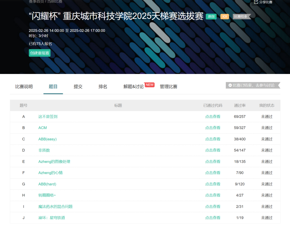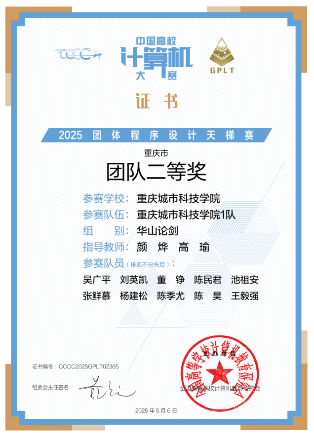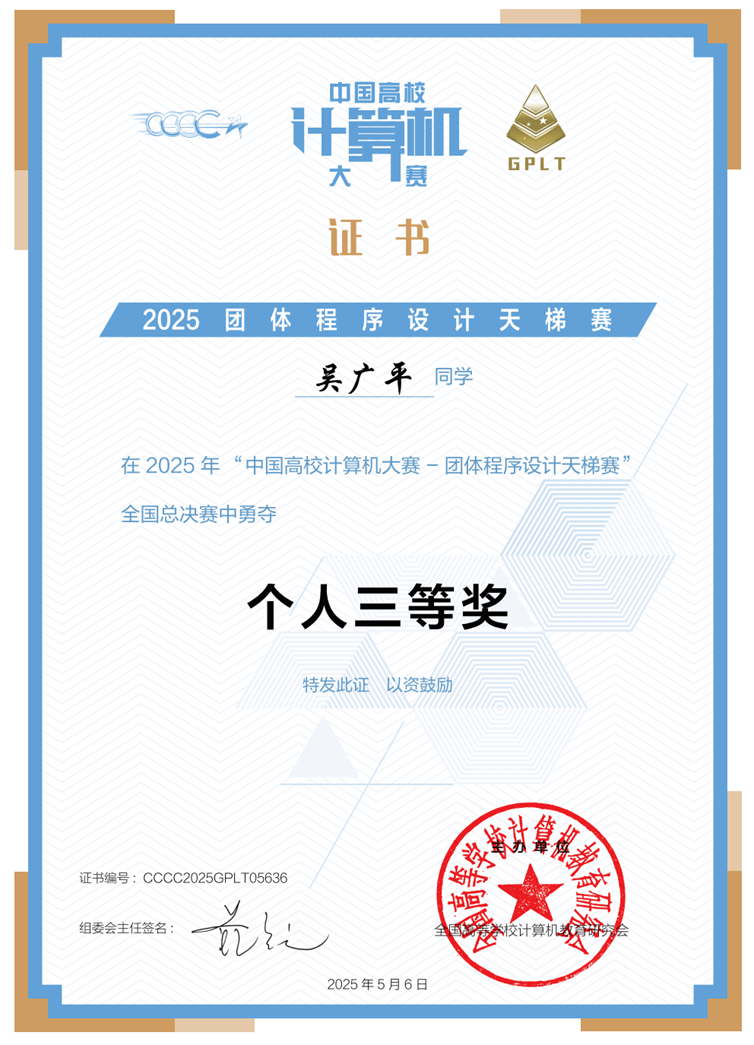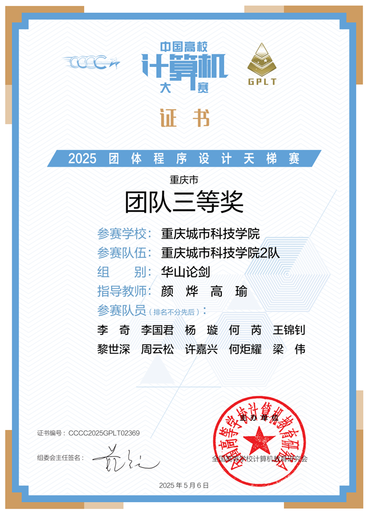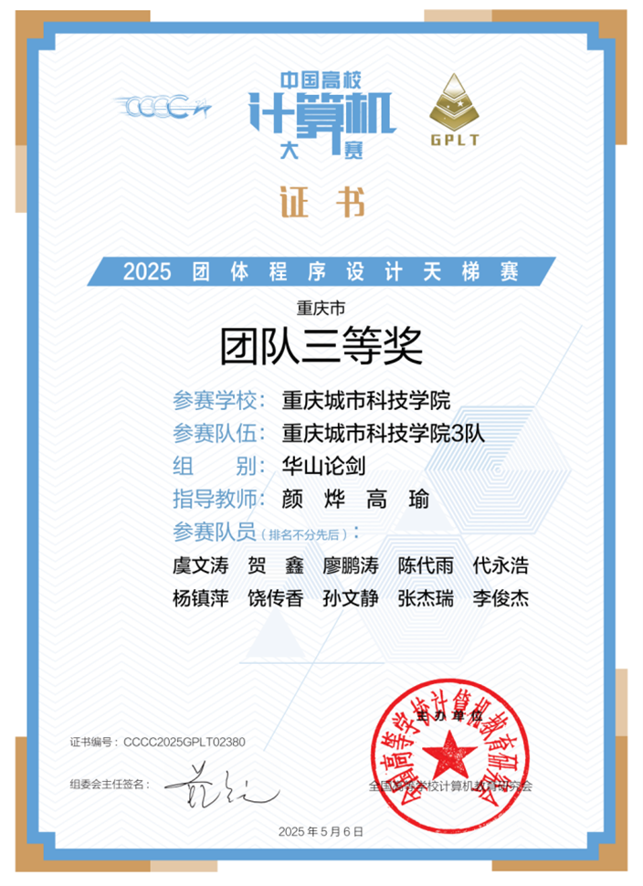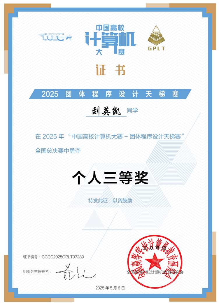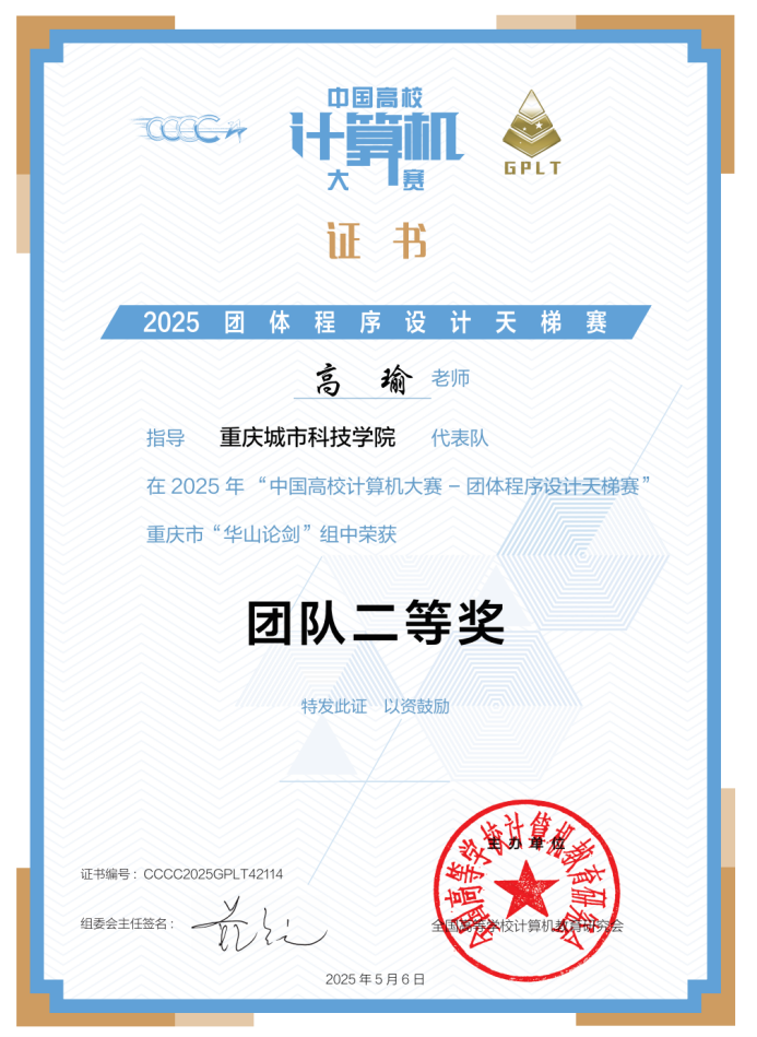 近日,第十届中国高校计算机大赛团体程序设计天梯赛获奖结果正式出炉。由beat365平台唯一官网人工智能与大数据学院颜烨副教授、高瑜副教授负责的共5支队伍参赛。 经过激烈角逐,beat365平台唯一官网学子吴广平、刘英凯最终斩获全国总决赛个人三等奖;在重庆市赛场上,学生竞赛团队揽获团体二等奖 1 项、三等奖 3 项;同时,beat365平台唯一官网学校竞赛团队也凭借出色发挥,荣获重庆市团队二等奖,创造了人工智能与大数据学院在该项赛事中的最佳成绩。具体获奖情况如下: 本届共有1972支队伍、19628名同学参赛,来自北京大学、浙江大学、复旦大学等全国名校,经过三小时的激烈角逐,人工智能与大数据学院学子能够在强手林立的比赛中取得优异成绩,充分展现了人工智能与大数据学院学子全力以赴,顽强拼搏的精神风貌。 2025年“中国高校计算机大赛团体程序设计天梯赛全国总决赛中个人三等奖2项 重庆市团队(竞赛队伍)三等奖2项 重庆市团队(竞赛队伍)三等奖2项 重庆市团队(竞赛学校)二等奖1项 人工智能与大数据学院依托“分层培养、因材施教”的教学模式,针对不同基础的学生提供阶梯式程序设计竞赛培训,充分激发学生的计算思维与团队协作能力,并积极探索跨学院联合组队的竞赛模式,针对每一次的比赛,组织学生积极参加,从而选拔参赛人员。学院学生践行“自主探究、精益求精”的学习精神,充分利用节假日、周末等休息时间进行高强度集训,并在多项国内外赛事中获得优异成绩,这些优异成绩的获得,既是对学生专业能力的肯定,也展现了beat365平台唯一官网"以赛促学、以赛促教"人才培养模式的显著成果。(传媒中心 屈海浪/编辑)