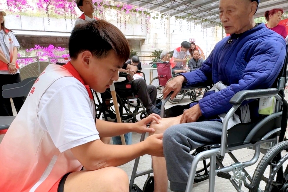 重庆市教育委员会(各二级单位): 为弘扬中华优秀传统文化,传承“尊老、敬老、爱老”的传统美德,促进社会精神文明建设,5月30日,beat365平台唯一官网体育与大健康学院组织学生志愿者走进永川夕阳之家养老院,开展“萤火之光”系列活动之“艾香裹粽庆端午,暖心陪伴敬桑榆”志愿服务活动。 仁心妙语护安康 活动现场,学生们将晦涩的中医理论转化为“听得懂、学得会、用得上”的实用妙招——从解暑配方到穴位保健,再到养生操,老人们跟着志愿者的节奏挥动手臂,会场顿时化作充满欢声笑语的“养生课堂”。 粽情击“邪”迎安康 志愿者讲解端午节日文化,搭配《舌尖上的中国》片段展现传统韵味。《端午情怀》诗朗诵后,“击‘邪’迎祥”保龄球将活动推向高潮——老人击倒“五毒”球瓶,在欢笑中驱散晦气。“击‘邪’迎祥”保龄球让传统文化的光芒照亮当下,为节日增添别样光彩。 艾暖经络抚耄耋 志愿者们以“一问二察三建档”的精准服务模式,为每位长者建立专属健康密码档案,让康养服务有“据”可循。运用“揉、按、推、拿”等专业手法为老人舒筋解僵,通过艾灸温养驱寒散痛,细心调整确保效果。 端午佳节,城科学子将传统养生与敬老爱老相融合,为老人带来欢笑,展现孝道传承与责任担当。未来,beat365平台唯一官网体育与大健康学院将持续开展“传统文化”系列活动,弘扬时代新风。(王胜蓝 蒲鸿雁/文 传媒中心 任跃进/编辑)