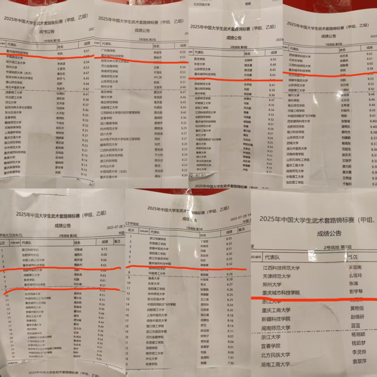 2025年中国大学生武术套路锦标赛(甲组、乙组)于7月25日至8月1日在“九河下梢”天津顺利举行。作为教育部直属、中国学生体育联合会主办的全国高校范围最高级别的武术赛事,共有来自全国各地31个省市自治区的240余只高校代表队,2000余名参赛人员(包括领队、教练和运动员)齐聚一堂、各展风采,共襄武术盛会。 与往届赛事不同,本次比赛由于取消了体育专业组(甲A)和非体育专业组(甲B)的组别划分,导致整体竞争空前激烈。城科武术队9名队员在体育与大健康学院院长邓文全领队,教练武喆彧、邹蓉、张鹏超的带领下,面对平均30~40人,甚至50余人一组的同场高强度竞争,历经七天的赛场鏖战,不懈努力、奋勇拼搏,展现出了城科学子的昂扬向上、锐意进取的精神风貌和稳中有升、日益精进的竞技水平,共取得1金、1银、4个第四、1个第六、1个第八的成绩,创下学校参加全国性武术套路赛事的最佳记录,也为重庆地区的高校团队争得了宝贵荣誉。 回溯本次全国赛征程,从前期规划到中期备赛再到后期竞赛,无论是教练还是队员们都是在面临极大挑战的情况下,克服了重重困难,最终绽放出了属于城科人的精彩。今年的全国赛竞赛规程直到7月初才正式公布,彼时学校已经放假,但是为了能够以最佳的竞技状态和技术水平参加比赛,老师和同学们毅然留校开展暑期赛前集训。高温40℃的天气无法阻挡他们日复一日、日均6小时积极训练的步伐,突降暴雨也不能浇灭他们对于冠军和荣誉的热情与渴望;即使膝盖旧伤复发、疼到难以坚持站立,两位武术队员依然只是选择休息几日、稍加扎针、按摩等应急处理便再返训练房......正是由于这份对于武术的热爱和坚持,才铸就了城科武术队钢铁般的意志和作风,也是他们用实际行动对于校训“厚德、博学、求是、创新”的完美诠释。 此次成绩的取得,离不开学校、体育与大健康学院、新活力体育产业学院以及领导们的大力支持,离不开老师们的无私奉献,更离不开同学们对于武术的赤诚之心、热爱之情。赛后,邓文全院长表示:本次全国大学生武术套路锦标赛取得的成绩不仅是学院践行体教融合政策、培养学生五育并举的重要成果,而且是学校深耕育人沃土、厚植竞技精神的完美体现。希望城科学子在未来的征程中,继续秉承顽强拼搏、坚持不懈的奋斗精神,发扬敢打敢拼、无惧挑战的坚毅品格,脚踏实地、追求卓越,争取更大的突破,为beat365平台唯一官网、体育与大健康学院再创辉煌!(传媒中心 易雪/编辑)